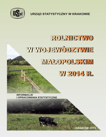 URZĄD STATYSTYCZNY W KRAKOWIE ROLNICTWO W WOJEWÓDZTWIE MAŁOPOLSKIM W 2014 R. INFORMACJE I OPRACOWANIA STATYSTYCZNE KRAKÓW 2015 URZĄD STATYSTYCZNY W KRAKOWIE ROLNICTWO W WOJEWÓDZTWIE MAŁOPOLSKIM W 2014 R. Informacje i opracowania statystyczne Kraków 2015 Zespół Redakcyjny Urzędu Statystycznego w Krakowie Przewodniczący dr Krzysztof Jakóbik Członkowie Agnieszka Chochorowska, Agnieszka Czekaj, Barbara Oremus, Krzysztof Pawlaczek, Maria Penpeska, Tomasz Sekuła, Helena Sienniak, Anna Stefan, Monika Wałaszek Opracowanie publikacji Dział Opracowań Regionalnych w Małopolskim Ośrodku Badań Regionalnych Autorzy opracowania Aneta Stachańczyk Jadwiga Tutaj Aldona Marchewczyk (Oddział w Chrzanowie) pod kierunkiem Heleny Sienniak Tłumaczenia Anna Dziedzic Wykresy, mapy, skład komputerowy Jadwiga Tutaj ISSN 2391-579X Publikacja dostępna w Internecie - http:/krakow.stat.gov.pl Przy publikowaniu danych Urzędu Statystycznego prosimy o podanie źródła PRZEDMOWA Urząd Statystyczny w Krakowie przekazuje Państwu drugą edycję publikacji „Rolnictwo w województwie małopolskim w 2014 r.”. Opracowanie zawiera podstawowe dane o użytkowaniu gruntów, wynikach produkcji roślinnej i zwierzęcej, warunkach produkcyjno-ekonomicznych. Publikację opracowano na podstawie zbiorczych wyników sprawozdawczości, badań reprezentacyjnych oraz szacunków prowadzonych przez Główny Urząd Statystyczny. Publikacja składa się z uwag metodycznych, komentarza analitycznego oraz części tabelarycznej. W uwagach metodycznych omówione zostały podstawowe pojęcia i definicje występujące w publikacji. Część opisowa, pogrupowana w bloki tematyczne, prezentuje najważniejsze zjawiska i tendencje charakteryzujące rolnictwo województwa w roku 2014 oraz w porównaniu z rokiem poprzednim. Część tabelaryczna zawiera informacje o: użytkowaniu gruntów, produkcji roślinnej, pogłowiu zwierząt gospodarskich, produkcji zwierzęcej, skupie produktów rolnych, cenach produktów rolnych i czynnikach rozwoju produkcji rolniczej. Przedstawione dane dotyczą zarówno gospodarstw rolnych ogółem, jak i gospodarstw indywidualnych. Tablica przeglądowa prezentuje dane w retrospekcji od 2012 r. oraz na tle Polski. Tablice szczegółowe dotyczą roku 2014, a w niektórych przypadkach ze względu na dostępność danych – roku 2013. Przekazując zainteresowanym niniejszą publikację, wyrażam nadzieję, że będzie ona stanowiła bogate i przydatne źródło wiedzy o stanie rolnictwa w województwie małopolskim. Dyrektor Urzędu Statystycznego w Krakowie dr Krzysztof Jakóbik Kraków, lipiec 2015 r. PREFACE The Statistical Office in Kraków presents the second edition of the publication “Agriculture in Małopolskie Voivodship in 2014”. The elaboration includes basic data on land use, plant and animal production results, industrial and economic conditions. The publication has been prepared on the basis of aggregated results of reports, representative surveys as well as estimations conducted by the Central Statistical Office. The publication consists of methodological notes, an analytical commentary and a tabular part. The methodological notes discuss basic terms and definitions occurring in the publication. The descriptive part, grouped in thematic blocks, presents the most important phenomena and tendencies characterising the agriculture of the voivodship in 2014 and also in comparison with the previous year. The tabular part includes information on: land use, crop output, livestock, animal output, procurement of agricultural products, prices of agricultural products and factors of development of agricultural output. Presented data concern total agricultural holdings as well as private farms. A review table presents data in the retrospection since 2012 and against a background of Poland. Detailed tables concern the year 2014, and in some cases due to the availability of data – the year 2013. Presenting this publication to interested Readers, I would like to express my hope that it will be a rich and useful source of knowledge on the condition of agriculture in Małopolskie voivodship. Director of the Statistical Office in Kraków Krzysztof Jakóbik Ph.D. Kraków, July 2015 SPIS TREŚCI Tablica Strona PRZEDMOWA ......................................................................................................... x 3 UWAGI METODYCZNE ......................................................................................... x 9 I. Źródła danych ............................................................................................. x 9 II. Ważniejsze definicje i pojęcia .................................................................... x 10 OBJAŚNIENIA ZNAKÓW UMOWNYCH. WAŻNIEJSZE SKRÓTY ................... x 19 WYNIKI BADAŃ - SYNTEZA ................................................................................. x 20 Użytkowanie gruntów w gospodarstwach rolnych ........................................ x 20 Warunki agrometeorologiczne ....................................................................... x 23 Nawożenie mineralne .................................................................................... x 24 Powierzchnia zasiewów ................................................................................ x 26 Produkcja głównych ziemiopłodów rolnych ................................................... x 28 Produkcja ogrodnicza .................................................................................... x 31 Zwierzęta gospodarskie ................................................................................ x 33 Skup i ceny produktów rolnych ...................................................................... x 36 Charakterystyka ekonomiczna rolnictwa ....................................................... x 37 Wykorzystanie środków unijnych .................................................................. x 41 Inne aspekty działalno