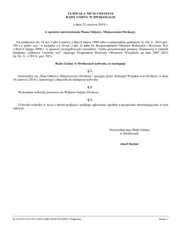 UCHWAŁA NR XLVIII/229/14 RADY GMINY W DWIKOZACH z dnia