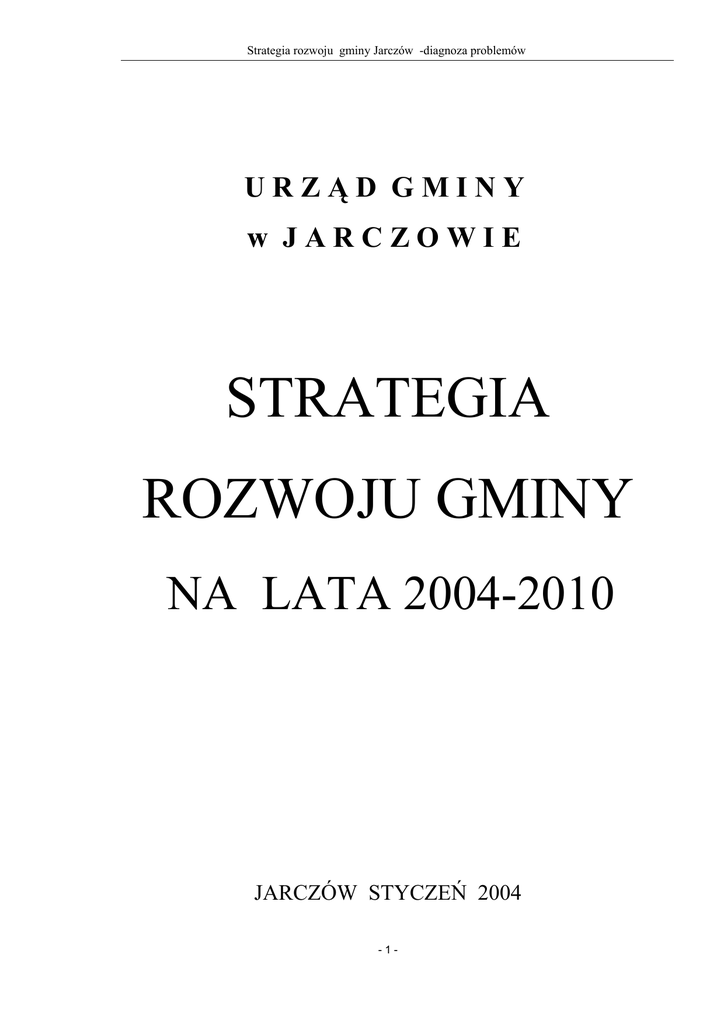 Strategia rozwoju gminy Jarczów -diagnoza problemów URZĄD GMINY w JARCZOWIE STRATEGIA ROZWOJU GMINY NA LATA 2004-2010 JARCZÓW STYCZEŃ 2004 -1- Strategia rozwoju gminy Jarczów -diagnoza problemów WPROWADZENIE SZANOWNI PAŃSTWO ! Celem opracowania niniejszej strategii jest przygotowanie pod względem merytorycznym zestawu zadań określających rozwój społeczno-gospodarczy gminy na lata 2004- 2010. Proponowane w strategii kierunki działań spełniają kilka funkcji i są instrumentem zarządzania, materiałem promocyjnym, a wobec ewentualnych inwestorów i instytucji pomocowych materiałem informacyjnym i edukacyjnym o mechanizmach i preferencjach rozwojowych istotnych dla społeczeństwa gminy JARCZÓW. Strategia uwzględnia aktualne realia ekonomiczne gminy. Jest też próbą oceny szans i zagrożeń dla realizacji planów bazowych. Zespół przygotowujący strategię wykazał duże zaangażowanie i chęć opracowania takiego dokumentu, który przyczyniłby się do rozwoju gminy. Strategię rozwoju gminy JARCZÓW opracowały dwa zespoły pod kierownictwem Wójta Gminy - Bogdana Michno. Pierwszy zespół tworzyli: Drugi zespół pracował w składzie: 1. mgr inż. Tomasz Tyrka - koordynator 1. Jerzy Zawiślak- koordynator 2. mgr Wiesław Zawiślak 2. Anna Pokrywka 3.mgr Dariusz Czop 3.Danuta Jaremko 4. Kazimierz Kmiecik 4. Tadeusz Mucha 5. Kazimierz Kloc 6. Anna Buczak Za współpracę przy opracowywaniu strategii Wójt Gminy dziękuje w/w osobom jak również innym osobom, które brały czynny udział w przygotowaniu niniejszego dokumentu. -2- Strategia rozwoju gminy Jarczów -diagnoza problemów SPIS TREŚCI Wstęp ...................................................................................................................................4 DZIAŁ A Województwo lubelskie .............................................................................7 DZIAŁ B Powiat tomaszowski ................................................................................ 12 DZIAŁ C Rozpoznanie stanu istniejącego i diagnoza problemów........................... 16 I Historia gminy ......................................................................................... 16 II Ochrona zdrowia ..................................................................................... 17 1. Baza ..................................................................................................... 18 2. Sytuacja zdrowotna ludności ............................................................... 19 III Bezpieczeństwo publiczne ....................................................................... 20 1. Przestępstwa ........................................................................................ 20 2. Wykroczenia ........................................................................................ 21 3. Bezpieczeństwo w ruchu drogowym .................................................. 22 IV Sytuacja demograficzna ludności ............................................................ 23 V Bezrobocie ............................................................................................... 27 VI Pomoc społeczna ..................................................................................... 29 VII Szkolnictwo i oświata .............................................................................. 30 1. Szkoła Podstawowa w Jarczowie ........................................................ 31 a) Uczniowie ........................................................................................ 31 b) Kadra ............................................................................................... 31 c) Baza ................................................................................................. 31 2. Gimnazjum Publiczne w Jarczowie ..................................................... 32 a) Uczniowie ........................................................................................ 32 b) Kadra ............................................................................................... 32 c) Baza ................................................................................................. 32 3. Szkoła Filialna w Wierszczycy ........................................................... 33 a) Uczniowie ........................................................................................ 32 b) Kadra ............................................................................................... 33 c) Baza ................................................................................................. 33 4. Szkoła Podstawowa w Gródku ........................................................... 33 a) Uczniowie ....................................................................................... 33 b) Kadra ............................................................................................... 33 -3- Strategia rozwoju gminy Jarczów -diagnoza problemów c) Baza ................................................................................................. 34 VIII Kultura i sport ....................................................................................... 34 IX Ochrona przeciwpożarowa .................................................................... 36 X Warunki geograficzno - geologiczne ..................................................... 36 XI Infrastruktura techniczna ....................................................................... 41 1. Komunikacja i transport drogowy ..................................................... 41 a) Drogi powiatowe ........................................................................... 41 b) Drogi gminne ................................................................................. 42 c) Drogi dojazdowe do gruntów i ulic ............................................... 44 2. Ciepłownictwo .................................................................................. 44 3. Stacje