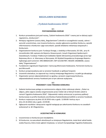 REGULAMIN KONKURSU „Tydzień kodowania 2016”