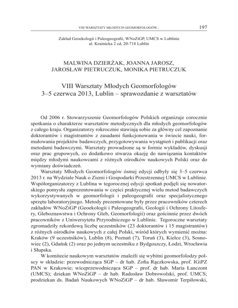 VIII Warsztaty Młodych Geomorfologów 3–5 czerwca 2013, Lublin