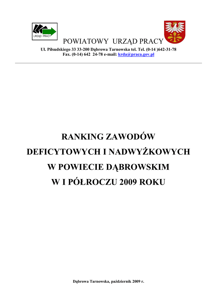ranking zawodów deficytowych i nadwyżkowych w powiecie