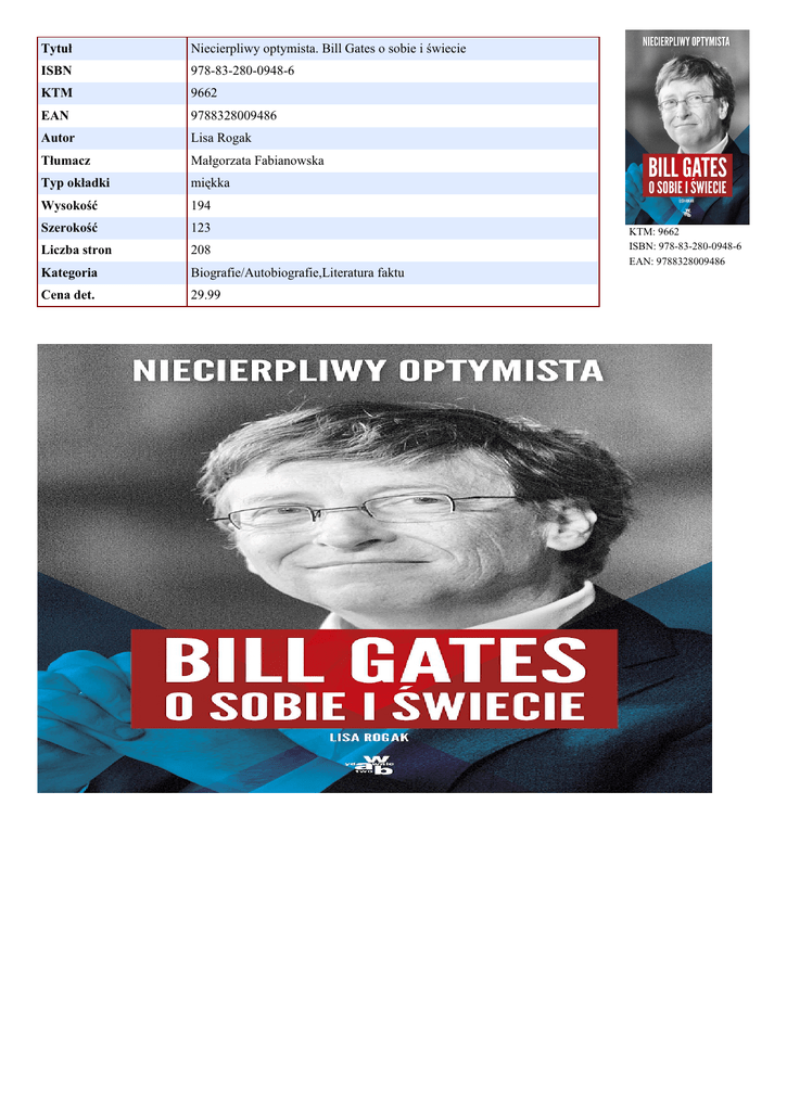 Tytuł Niecierpliwy optymista. Bill Gates o sobie i świecie ISBN 978