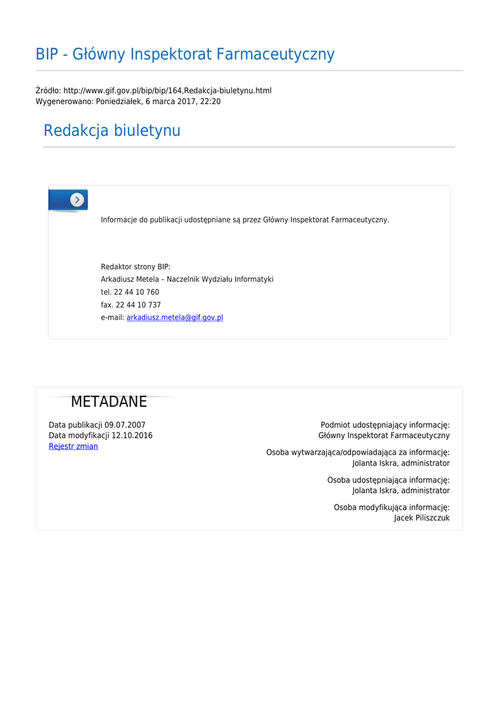 BIP - Główny Inspektorat Farmaceutyczny Redakcja biuletynu