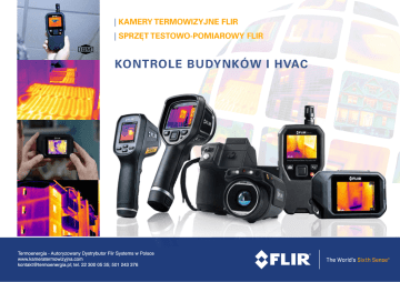 | KAMERY TERMOWIZYJNE FLIR | SPRZĘT TESTOWO-POMIAROWY FLIR KONTROLE BUDYNKÓW I HVAC Termoenergia - Autoryzowany Dystrybutor Flir Systems w Polsce www.kameratermowizyjna.com [email protected]; tel. 22 300 05 35; 501 243 376 FLIR Systems to światowy lider w branży kamer termowizyjnych. Produkujemy szeroką gamę kamer termowizyjnych, służących do wykrywania wad budowlanych. Ale oferta FLIR Systems to coś więcej niż kamery termowizyjne. Mamy też urządzenia dla inspektorów nadzoru budowlanego i audytorów energetycznych, administratorów obiektów, hydraulików i innych specjalistów z branży budowlanej. Dzięki naszym produktom mogą oni wykonywać pracę szybciej i dokładniej niż kiedykolwiek wcześniej. Termoenergia - Autoryzowany Dystrybutor Flir Systems w Polsce www.kameratermowizyjna.com [email protected]; tel. 22 300 05 35; 501 243 376 KAMERY TERMOWIZYJNE FLIR Nie ma dwóch takich samych budynków. Tak samo nie ma dwóch takich samych użytkowników. To, czy kamera spełni oczekiwania użytkownika, zależy od konkretnego zastosowania i doświadczenia z zakresu termowizji Można być początkującym użytkownikiem lub ekspertem IR – FLIR Systems ma dla każdego odpowiednią kamerę termowizyjną. C2 – ŹLE ZAIZOLOWANA ŚCIANA C2 – PRZEGRZANY WYŁĄCZNIK ŚCIENNY | KOMPAKTOWE KAMERY TERMOWIZYJNE FLIR PODCZERWIEŃ NA KAŻDYM KROKU TG165 – LODÓWKA TG165 – SILNIK FLIR TG130, TG165 I TG167 FLIR C2 FLIR C2 to pierwsza na świecie kamera termowizyjna w rozmiarze kieszonkowym, wyposażona we wszystkie funkcje konieczne dla specjalistów i wykonawców z branży budowlanej. Warto ją mieć zawsze przy sobie, aby w każdej chwili wykrywać ukryte rozkłady ciepła, które sygnalizują utratę energii, wady konstrukcyjne, problemy z HVAC itp. Kamery termowizyjne z pomiarem punktowym FLIR TG130, TG165 i TG167 umożliwiają stosowanie termowizji do wykrywania problemów cieplnych, których nie da się wykryć za pomocą standardowego pirometru. Pracuj szybciej i z większą pewnością, że nie przeoczyłeś czegoś istotnego. Termoenergia - Autoryzowany Dystrybutor Flir Systems w Polsce www.kameratermowizyjna.com [email protected]; tel. 22 300 05 35; 501 243 376 | KAMERY TERMOWIZYJNE FLIR DLA PROFESJONALISTÓW ŁATWA OBSŁUGA FLIR SERIA Ex Kamery termowizyjne z MSX® Łatwiejsze w obsłudze niż smartfon. Już seria FLIR E4 do E8, w cenach zaczyniających się poniżej 1000 Eur, oferuje bogatą liczbę opcji zarówno dla nowych użytkowników termografii jak i doświadczonych specjalistów. E8 – RURA W ŚCIANIE (ZDJĘCIE MSX) FLIR SERIA EXXBX EKRAN DOTYKOWY Exxbx Exxbx – USZKODZENIE SPOWODOWANE PRZEZ WODĘ Podobnie jak w przypadku urządzeń FLIR serii Ex, do wyboru jest szereg różnych rozdzielczości detektora. Oprócz tego, dostępne są różne wymienne obiektywy: szerokokątne, dzięki którym można rejestrować większą powierzchnie z małej odległości lub teleobiektywy umożliwiające podgląd i pomiar temperatur mniejszych obiektów i z większej odległości. Ręczne ustawianie ostrości pozwala na precyzyjne prezentacje szczegółów i uzyskanie idealnych obrazu. Seria Exxbx to wspaniałe narzędzie dla specjalistów termografii dzięki funkcjom takim, jak MSX, ekran dotykowy czy proste, intuicyjne menu. Exxbx – SILNIK (ZDJĘCIE MSX) Termoenergia - Autoryzowany Dystrybutor Flir Systems w Polsce www.kameratermowizyjna.com [email protected]; tel. 22 300 05 35; 501 243 376 Dzięki połączeniu ze smartfonami i tabletami za pomocą aplikacji FLIR Tools Mobile dla urządzeń Apple® i Android™ można przesyłać strumieniowo wideo oraz szybko importować, przetwarzać i udostępniać obrazy, czy zmieniać ustawienia kamery. | KAMERY TERMOWIZYJNE FLIR DLA EKSPERTÓW WIĘKSZA EFEKTYWNOŚĆ FLIR SERIA T Kamery serii T mają najwyższą rozdzielczość termowizyjną, ergonomiczny, uchylny układ optyczny oraz szybkie automatyczne ustawianie ostrości. Dzięki nim zapracowani technicy mogą łatwiej niż kiedyś uzyskać najlepsze obrazy nawet z najtrudniejszych do uchwycenia kątów Są to kamery termowizyjne wyposażone we wszystkie opcje, dzięki czemu wykonywanie codziennej pracy jest łatwiejsze i wydajniejsze niż kiedykolwiek. Najlepszy model z serii, T1K, generuje obrazy o rozdzielczości aż 1020 x 768 pikseli. Opcjonalne obiektywy i inne akcesoria pozwalają na modyfikację kamery termowizyjnej do zmieniających się potrzeb użytkownika. TERMOWIZJA HD T1K Termoenergia - Autoryzowany Dystrybutor Flir Systems w Polsce www.kameratermowizyjna.com [email protected]; tel. 22 300 05 35; 501 243 376 UCHYLNY UKŁAD OPTYCZNY W SERII T AUTOMATYCZNA ORIENTACJA W SERII T6xxbx Szczegóły, specyfikacje, wideo i możliwości zastosowań są dostępne w witrynie www.flir.com/instruments | SPRZĘT TESTOWO-POMIAROWY FLIR DLA SPECJALISTY Z BRANŻY BUDOWLANEJ: WIĘCEJ NIŻ KAMERY TERMOWIZYJNE Seria FLIR TGxx FLIR MR77 Termometry na podczerwień z pomiarem punktowym FLIR TG54 i TG56 mierzą temperaturę powierzchni bezdotykowo. Nowy FLIR MR77 to wytrzymały, wielofunkcyjny wilgotnościomierz wyposażony w stykową powierzchnię pomiarową oraz sondę z bolcem, do pomiaru wilgotności do 0,75” pod powierzchnią wykonaną z różnych rodzajów drewna i materiałów budowlanych. Urządzenie zawiera też pirometr z celownikiem laserowym, wymienny czujnik temperatury/wilgotności oraz alarmy o wysokim/ niskim poziomie wilgoci i wilgotności. Seria FLIR TG1xx FLIR MR176 i MR160 Pirometry na podczerwień z pomiarem punktowym Wilgotnościomierz Kamery termowizyjne z pomiarem w punkcie Wilgotnościomierz termowizyjny Seria kamer termowizyjnych TG1xx z pomiarem w punkcie pozwala na wykrywanie problemów z temperaturą dzięki podczerwieni. Zastosowana w MR176 technologia pomiaru wspomaganego podczerwienią (Infrared Guided Measurement – IGM), której podstawę stanowi wbudowany czujnik termowizyjny Lepton®, precyzyjnie wskazuje potencjalne miejsca gromadzenia się wilgoci i