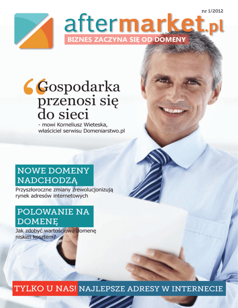 nr 1/2012 BIZNES ZACZYNA SIĘ OD DOMENY “ Gospodarka przenosi się do sieci - mowi Korneliusz Wieteska, właściciel serwisu Domeniarstwo.pl NOWE DOMENY NADCHODZĄ Przyszłoroczne zmiany zrewolucjonizują rynek adresów internetowych POLOWANIE NA DOMENĘ Jak zdobyć wartościową domenę niskim kosztem? TYLKO U NAS! NAJLEPSZE ADRESY W INTERNECIE CO.PL DOMENY CO.PL DLA BIZNESU Tylko w Rejestracja – 20 zł PRZEDŁUŻENIE – 20 zł Reaktywacja – 20 zł Cesja – darmowa Transfer – darmowy OD REDAKCJI Przed Państwem pierwszy numer miesięcznika „Aftermarket.pl”. To, jak dotychczas, jedyne polskie czasopismo drukowane poświęcone tematyce domen internetowych. Skąd pomysł, by o adresach WWW pisać w tradycyjnym czasopiśmie? Domeny są naturalną częścią środowiska internetowego i gdy surfujemy w Sieci, zazwyczaj nie rozmyślamy nad ich wartością. Często postrzegamy je jako brandy – dobrze wypromowane nazwy w graficznej oprawie logotypu. Rzadziej dostrzegamy wymierną wartość adresów internetowych „w stanie surowym” – informacyjny, marketingowy oraz wizerunkowy potencjał odpowiedniej nazwy z końcówką. Dopiero kiedy sami angażujemy się w przedsięwzięcia internetowe, zaczynamy doceniać znaczenie dobrego adresu WWW – niestety niekiedy już poniewczasie, przekonując się, że promocja słabej domeny wymaga wielokrotnie większego nakładu finansowego niż koszt wypromowania celnej, dobrze brzmiącej nazwy. Miesięcznik „Aftermarket.pl” powstał po to, by pokazać rangę domeny w świecie e-biznesu i wyjaśnić znaczenie adresów WWW dla powodzenia przedsięwzięć internetowych. Piszemy o tym offline, bo w Sieci prawdziwa wartość domen zbyt często umyka uwadze internautów. Zapraszam zatem do lektury. Michał Pleban Największe sprzedaże Domeny .pl* Domeny ogółem* marketinginternetowy.pl 6 500 zł MiniPlay.com 70 000 $ piekarenka.pl 4 510 zł Styles.com 60 000 $ oblicz.pl 2 750 zł iTrust.com 30 000 $ regipsy.pl 1 800 zł VU.ca 30 000 $ pompki.pl 1 755 zł Juegos-Gratis.com 25 800 $ redaktorzy.pl 1 300 zł Lead.co 25 000 $ przesylki.com 1 200 zł Grafeno.com 19 350 $ sylwek.pl 1 200 zł Thriller.com 19 000 $ kontafirmowe.pl 1 110 zł Upware.com 18 000 $ chemia-gospodarcza.pl 1 110 zł Banque.net 15 480 $ *Zestawienie dotyczy jedynie ujawnionych transakcji z okresu od 15.11.2012 do 29.11.2012 Źródło: cenydomen.pl *Zestawienie dotyczy jedynie ujawnionych transakcji z okresu od 19.11.2012 do 25.11.2012 Źródło: dnjournal.com REDAKTOR NACZELNY: Michał Pleban GRAFIKA: Marta Muszel NAKŁAD: 3000 egz. DYSTRYBUCJA: bezpłatna, wysyłkowa KONTAKT tel. (+48) 603 410 410 e-mail: [email protected] WYDAWCA Michał Pleban ul. Żółkiewskiego 9/3 05-820 Piastów 3 WYWIAD Gospodarka przenosi się do sieci Nazwy generyczne w połączeniu z końcówką krajową – to sprawdzony model inwestycji w branży domenowej. A inwestowanie w domeny wciąż się opłaca, bo gospodarka coraz bardziej przenosi się do Internetu. O zarabianiu na adresach www rozmawiamy z Korneliuszem Wieteską, właścicielem serwisu Domeniarstwo.pl Po co płacić za domenę cztero- czy pięciocyfrowe kwoty, skoro można ją zarejestrować za zaledwie dziesięć złotych? Szczególnie że końcówek alternatywnych dla .pl czy .com nie brakuje, a nowych wciąż przybywa – zawsze więc można znaleźć dostępny adres www. Korneliusz Wieteska: Każdy, kto ma elementarne pojęcie o domenach internetowych, wie że najbardziej wartościowe są nazwy generyczne. To one stanowią trzon wtórnego rynku domen, bo w odróżnieniu od nazw własnych („słowotworów”) odwołują się do tematyki serwisu. Adresy generyczne nie bez powodu nazywane są wirtualnymi nieruchomościami. Wartościowa domena to internetowy odpowiednik wartościowej lokalizacji w świecie fizycznym. Możemy na przykład wybudować biurowiec w centrum dużego miasta, ale możemy też zaryzykować podobną inwestycję na obrzeżach podkarpackiego lasu. Wartość obu przedsięwzięć będzie diametralnie różna. Analogiczna sytuacja ma miejsce 4 w rzeczywistości wirtualnej – każda agencja działająca na domenie agencja.pl wygeneruje znacznie większą ilość odwiedzin, niż w sytuacji, gdyby posługiwała się trudnym do zapamiętania i nic nieznaczącym adresem internetowym. Warto też pamiętać, że zasięg działalności w Internecie jest znacznie większy niż w świecie realnym. W związku z tym efektywne funkcjono-wanie jakiegokolwiek biznesu wymaga promowania go w cyberprzestrzeni. Domena jest zatem cenna głównie dla klienta końcowego, ale czy na tyle, że wciąż opłaca się inwestować na tym rynku? KW: Obecnie większość dużych firm nie ogranicza się do posiadania jednej nazwy domeny i ciągle kupuje nowe. Wiele przedsiębiorstw, mimo posiadania silnych marek, zainwestowało w znaczne ilości adresów generycznych, ponieważ dysponowanie nimi daje duże korzyści biznesowe. W efekcie nabycie topowej domeny niskim kosztem stało się praktycznie niemożliwe. W dodatku coraz więcej firm zaczyna działać online, a więc zapotrzebowanie na domeny internetowe nieustannie rośnie. To sprawia, że inwestorzy wciąż mają szerokie możliwości działania. Dlaczego w ogóle zainteresowałeś się domenami? Byłeś wcześniej związany z branżą IT? KW: Z branżą IT byłem związany, ale większe znaczenie miało to, że od początku funkcjonowania Internetu w Polsce byłem jego aktywnym użytkownikiem. Moje zainteresowanie domenami wzięło się przede wszystkim ze świadomości, że każda z nich jest unikatowa i w tej niepowtarzalności tkwi ogromny potencjał. Od początku wiedziałem, że najbardziej opłaca się inwestycja w dobre domeny generyczne. Są one fundamentem, na którym budu- WYWIAD jemy biznes w Sieci. I tak dosyć późno zauważyłem, że jest to towar, którego wartość rośnie szybciej niż jakiegokolwiek innego dobra na świecie. Nie tylko sprzedajesz, ale również kupujes
