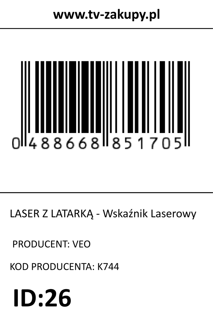 www.tv-zakupy.pl LASER Z LATARKĄ - Wskaźnik Laserowy PRODUCENT: VEO KOD PRODUCENTA: K744 ID:26