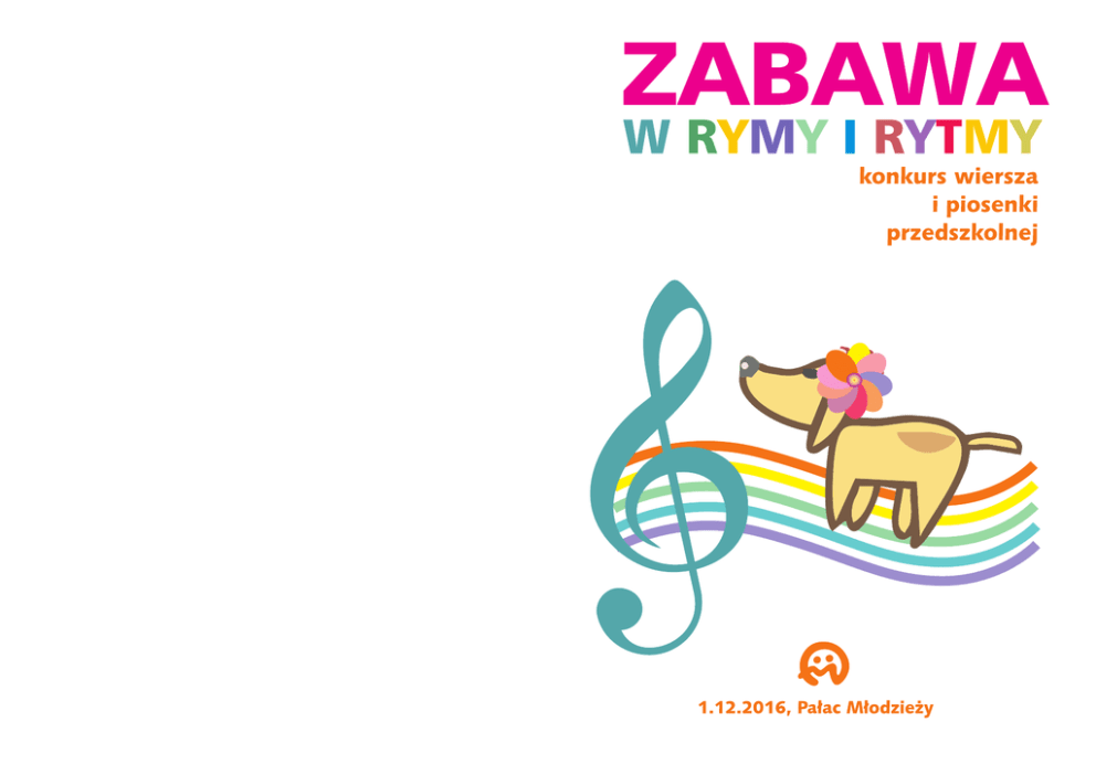 Imię i nazwisko opiekuna, tel. kom: .................................................................... Podpis dyrektora przedszkola Adres, telefon: .................................................................................. Nazwa przedszkola: .......................................................................... ..................................................................................... ......... ..................................................................................... ......... ..................................................................................... ......... 2. ..................................................................................... ......... ..................................................................................... ......... (prosimy wypełniać drukowanymi literami) ..................................................................................... ......... 1. W sprawach szczegółowych prosimy kontaktować się z p. Luizą Kubowicz-Dorosz, tel. 52 321 00 81, wew. 339 KARTA ZGŁOSZENIA Do udziału w konkursie zapraszamy dzieci z przedszkoli bydgoskich w wieku od 3 do 6 lat • Konkurs odbywa się w dwóch kategoriach: - recytacji - piosenki przedszkolnej • Warunkiem uczestnictwa jest przygotowanie przez wykonawcę jednego wiersza z dowolnie wybranej literatury dziecięcej lub jednej piosenki przedszkolnej • Wykonawca może się zaprezentować tylko jeden raz ! • W kategorii piosenki może wystąpić mały zespół (liczący nie więcej niż 3 osoby) • Organizatorzy dopuszczają wzbogacenie prezentacji muzyką (tylko podkład muzyczny bez wokalu) i rekwizytem • W konkursie może wziąć udział maksymalnie 2 przedstawicieli z danego przedszkola (za przedstawiciela uważa się również zespół - do 3 osób prezentujący piosenkę) • Organizatorzy powołają jury, które przyzna nagrody za najlepsze prezentacje • Konkurs odbędzie się 1.12.2016 o godz. 11.00 w sali widowiskowej Pałacu Młodzieży • Karty zgłoszenia prosimy przesłać do dnia 9.11.2016 na adres: Pałac Młodzieży, ul. Jagiellońska 27, 85-097 Bydgoszcz, z dopiskiem RYMY I RYTMY Udział w imprezie mogą wziąć tylko dzieci zgłoszone do 9.11.2016 • KONKURSU WIERSZA I PIOSENKI PRZEDSZKOLNEJ Zasady programowe: Kategoria (wiersz, piosenka) i tytuł utworu Bydgoszcz 1.12.2016 - Pałac Młodzieży Wiek KONKURSU WIERSZA I PIOSENKI PRZEDSZKOLNEJ Imię i nazwisko wykonawcy REGULAMIN