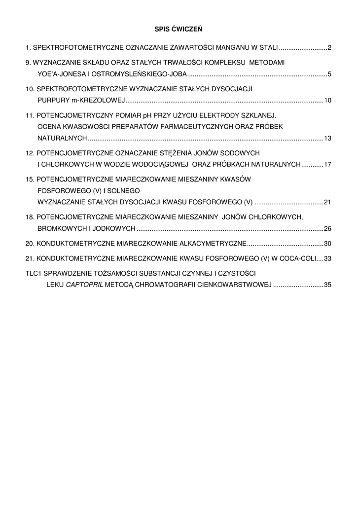 spis ćwiczeń 1. spektrofotometryczne oznaczanie zawartości