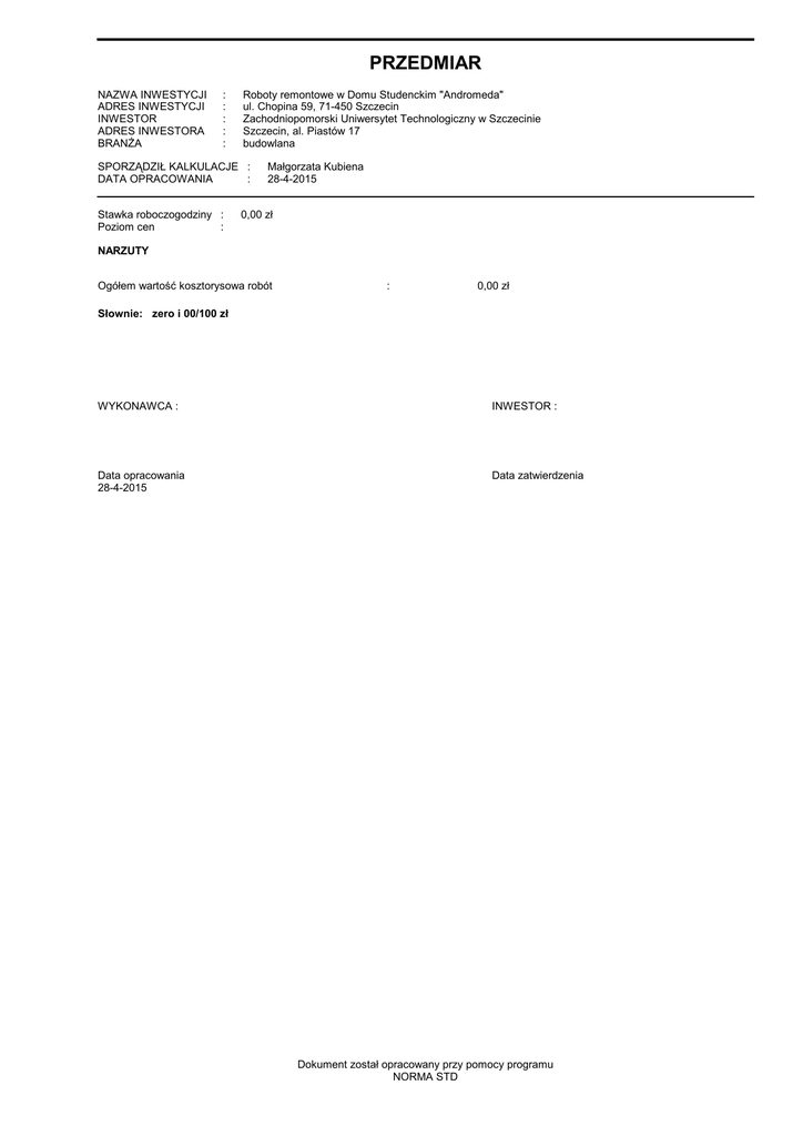 andromeda budowlane przedmiar - Zachodniopomorski Uniwersytet