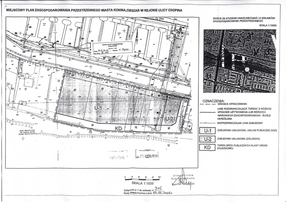 ' MIEJSCOWY PLAN ZAGOSPODAROWANIA PRZESTRZENNEGO MIASTA KONINA,OBSZAR W REJONIE ULICY CHOPINA WYRYS ZE STUDIUM U W A R U N K O W A K I I KIERUNK6W ZAGbSPODAROWANIA PRZESTRZENNEGO S K A L A 1:10000 LINIE R O Z G R A N I C Z A J A C E T E R E N Y O R 6 2 N Y M SPOSOBIE U2YTK0WANIA LUB R 6 2 N Y C H W A R U N K A C H Z A G O S P O D A R O W A N I A - 6C|SLE OKRESLONA NIEPRZEKRACZALNA MAPA MtASlUALNA HIE NAOAIt Sl^ DO :iOw "0JE«10W1CMo'irXyj|ljr;r|,-v,, CELOW M ITrrn'm T r T r r r.-, r I "IT---- -J- ; LINIAZABUDOWY Z A B U D O W A U S L U G O W A , U S T U G I P U B L I C Z N E (SAD) ' Z A B U D O W A U S L U G O W A (ZIELENIAK) 1. w KD •.'.•.--..••9,.' SKALA1:1000 Zaiqcznik nr 1 do uchwaly nr "if.!}.^.... Rady Miasta Konina 2 dnia .P.'^.-JQ.'.HoO 6 V. T E R E N D R 6 G PUBLICZNYCH K L A S Y DROGI DOJAZDOWEJ 6 Zal^cznik nr 2 do uchwaly Nr 715 Rady Miasta Konina z dnia 03.10.2006 roku w sprawie miejscowego planu zagospodarowania przestrzennego miasta Konina obszar w rejonie ulicy Chopina. Stwierdza si§ zgodnosc miejscowego planu zagospodarowania przestrzennego miasta Konina obejmuj^^cego teren poiozony w rejonie ulicy Chopina z ustaleniami „ S t u d i u m uwarunkowan i kierunkow zagospodarowania przestrzennego - Konin", uchwalonego 19 grudnia 200 Ir. uchwaly nr 691 Rady Miasta Konina. Zaiqcznik nr 3 do uchwaly Nr 715 Rady Miasta Konina z dnia 03.10. 2006 r. w sprawie miejscowego planu zagospodarowania przestrzennego miasta Konina obszar w rejonie ulicy Chopina 1. Teren obj^ty miejscowym planem zagospodarowania przestrzennego jest w stanie istniej^cym terenem, w pelni wyposazonym w sieci infrastruktury technicznej . 2. W zwi^zku z uchwaleniem miejscowego planu zagospodarowania przestrzennego miasta Konina obejmuj^cego teren poiozony w rejonie ulicy Chopina nie wyst^puje koniecznosc realizacji nowych sieci i urz^dzen systemu w o d o c i ^ o w e g o , kanalizacji sanitamej i deszczowej. 3. Przewiduje si§ - niezaleznie od ustalen planu, ze wzgl^du na z l y stan techniczny, modemizacj? i remonty sieci i urz^dzen systemu w o d o c i ^ o w e g o , kanalizacji sanitamej i deszczowej. 4. Inwestycje, o ktorych mowa w ust. 3 realizowane b§d% przez administratora sieci ze srodkow komunalnych. Zaiqcznik nr 4 do uchwaly Nr 715 Rady Miasta Konina z dnia 03.10.2006 r. w sprawie miejscowego planu zagospodarowania przestrzennego miasta Konina obszar w rejonie ulicy Chopina. IT^ ^ N a etapie wylozenia projektu planu do publicznego wgl^du Przedsi^biorstwo Handlowe „ A G A " Wanda Grzesiowska i Wspolnicy Spolka jawna 62-510 K o n i n ul. Chopina 16b, reprezentowane przez P a n i ^ Wand^ Grzesiowska, wnioslo uwagi dotycz^ce projektu planu. 1. Przedsi^biorstwo „ A G A " wniosio o wpisanie do projektu planu definicji uslug „prestizowych twierdz^c, iz wymaga tego Studium Uwarunkowan i Kierunkow Zagospodarowania Przestrzennego Miasta K o n i n a (Uchwala N r 691 Rady Miasta Konina z d n i a 19.12.2001r.). Twierdzenie powyzsze jest bezzasadne. Zgodnie ze Studium tereny ogolnomiejskiego centrum ustugowego wymagaj^ce wprowadzenia uslug prestizowych znajduj^, si? przy ul. A l . 1 Maja i ul. Dworcowej, natomiast plan obejmuje teren przy ul. Chopina.. 2. Przedsi^biorstwo „ A G A " wnioskuje o zmian? zakresu przedmiotowego planu tzn. obj^cie calego obszaru wskazanego w Uchwale N r 717 Rady Miasta Konina z dnia 20 marca 2002r. w sprawie uchwalenia zmiany planu ogolnego zagospodarowania m. Konina, w rejonie ulicy: Chopina i torow P K P . Rada Miasta Konina nie ma obowi^zku prawnego uchwalenia nowego planu obejmuj^cego caly obszar b^d^cy przedmiotem opracowania Uchwaly N r 717 Rady Miasta K o n i n a z dnia 20 marca 2002r. Zgodnie z art. 34 ust.l ustawy z dnia 27 marca 2003r. o planowaniu i zagospodarowaniu przestrzennym (Dz. U . z2003r. N r 80 poz. 717 ze zmianami) wejscie w zycie planu miejscowego powoduje utrat? mocy obowi^zuj^cej innych planow zagospodarowania przestrzennego lub ich cz^sci odnosz^cych si? do obj?tego nim terenu. Dokonuj^c wykladni powolanego artykulu nalezy stwierdzic, i z dopuszczalne jest podj?cie przez Rad? Miasta Konina uchwaly w sprawie p r z y s t ^ i e n i a do sporz^dzenia miejscowego planu zagospodarowania przestrzennego dla cz?sci obszaru, dla ktorego obowi^zuje juz plan miejscowy. 3. Postulaty dotycz^ce obslugi komunikacyjnej okreslone w pkt.2 uwag, aby inwestorzy korzystali w prowadzonej przez siebie dzialalnosci gospodarczej z samochodow o dopuszczalnej masie calkowitej do 3 ton oraz wprowadzenie zapisu ograniczaj^cego ilosc pracownikow pracuj^cych na jednej zmianie nie przekraczaj^cej liczby trzech, s^ niezasadne. Dzialanie s^du nie wymaga ci?zkiego transportu. Rowniez niewielki zieleniak nie wymaga wprowadzenia ograniczen dotycz^cych transportu i zatrudnienia. 4. Pozostale uwagi nie dotycz^ U c h w a l y N r ... Rady Miasta Konina z dnia ... 2006r. w sprawie miejscowego planu zagospodarowania przestrzennego miasta K o n i n a obszar w rejonie ulicy Chopina. Biorgc pod uwagg w/w argumenty nie uwzglednia sie uwagi wniesionej na etapie wylozenia planu do publicznego wglqdu. UZASADNIENIE do uchwaiy N r . z dnia... I^.?^.:. . ^ . ^ ; 2006 r. , ..Rady Miasta K o n i n a w sprawie uchwalenia miejscowego planu zagospodarowania.przestrzennego miasta K o n i n a obszar w rejonie Chopina. Po zakonczeniu procedury planistycznej uchwalono w dniu 17 maja 2006 r uchwaly nr 667 miejscowy plan zagospodarowania przestrzennego miasta K o n i n a obszar w rejonie ulicy Chopina. W z w i ^ z k u z polozeniem obszaru mi?dzy terenami kolejowymi a u l i c ^ Chopina, ulic^_ przy ktorej budynki maj^_ zroznicowan^ form? architektonicznq. oraz w zwi^zku ze specyfik^ budynku s^du i m o z l i w ^ zabudow^ zieleniaka pozostawiono inwestorom dowolnosc ksztattowania formy architektonicznej obiektow oraz innych parametrow wykorzystania terenu. Dowolnosc t? ustalono poprzez brak nakazow, zakazow i niektorych parametrow w t y m ksztaltu dachow, stopnia wykorzystania terenu pod poszczegolne zagospodarowania,