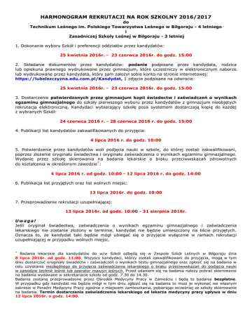 Harmonogram rekrutacji - Zespół Szkół Leśnych w Biłgoraju