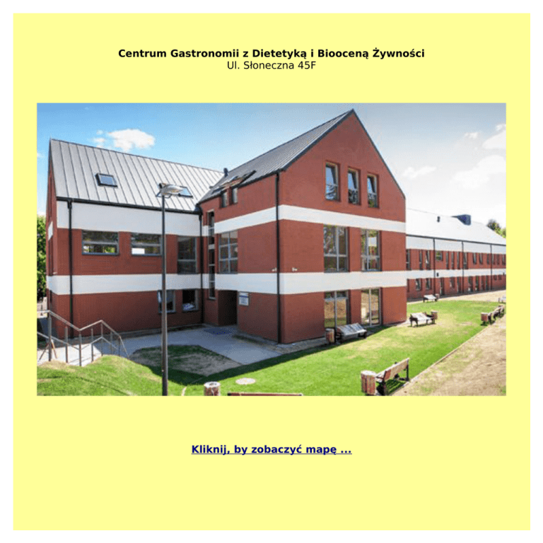 Centrum Gastronomii z Dietetyką i Biooceną Żywności Ul. Słoneczna 45F Kliknij, by zobaczyć mapę ...