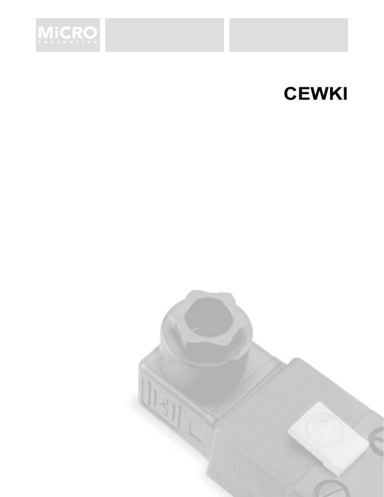 CEWKI 89 Cewki i akcesoria Cewki i akcesoria Typ ................................ Pilot elektro-pneumatyczny 3/2, NC, szerokoœæ 15 mm Przesterowanie rêczne . Monostabilny Ciœnienie robocze ......... 0...8 bar Rozmiar ......................... 0,8 mm Przep³yw nominalny ...... 16 l/min (przy 6 bar) Media ............................ Sprê¿one powietrze lub gazy neutralne, przefiltrowane do 50 mikronów, bez naolejania Przy³¹cze ED ................ 100% Klasa ochronna ............. IP 65 (z odpowiedni¹ wtyczk¹) Temperatura otoczenia . -10...50 °C (14...122 °F) 5 - 15 ms Czas reakcji .............. F (CEI 85) Klasa izolacji ............. Napiêcie Moc 220/230 V 50/60 Hz 110V 50/60Hz 48V 50/60Hz 24V 50/60Hz 24 V DC 12 V DC 3 VA 3 VA 3 VA 3 VA 1W 1W 0.200.000.901 0.200.000.902 0.200.000.937 0.200.000.903 0.200.000.923 0.200.000.913 Wtyczka 15 Opis 2 wtyki + uziemienie 0.200.000.938 Wtyczka z mo¿liwoœci¹ obrotu o 90 O Dioda LED Opis 220/230 V 50/60 Hz 110V 50/60Hz 48V 50/60Hz 24V 50/60Hz 0.900.000.628 0.900.000.627 0.900.000.626 0.900.000.481 P³ytka adaptacyjna do standardu CNOMO Opis P³ ytka adaptacyjna 0.200.000.939 U¿ywana do mocowania cewek na zaworach serii VS i CH, wtedy gdy wymagany jest niski pobór mocy 90 5.1.1.1 Seria15 15 Seria Cewki i akcesoria Cewki i akcesoria Typ ................................. Ciœnienie robocze ........ Rozmiar .................... Media ............................ Cewka, szerokoœci 22mm 0,5...10 bar 1,1 mm Sprê¿one powietrze lub gazy neutralne, przefiltrowane do 50 µ, bez naolejania Dop. wachania napiêcia ± 10% Dop. wach.czêstotliw. ± 10% Przy³¹cze ED ............. Klasa ochronna ............ Temperatura otoczenia . Temperatura powietrza . Czas reakcji .............. Klasa izolacji ................ Zalana w ....................... Certfikaty ....................... Napicie 100% IP 65 (z odpowiedni¹ wtyczk¹) Max. 50 °C (122 °F) -10...60 °C (14...140 °F) Oko³o. 10 ms H W ¿ywicy epoksydowej UL, oprócz napiêæ zaznaczonych (*) Moc 220V 50Hz - 240V 60Hz 110V 50Hz - 120V 60Hz 48V 50Hz - 48V 60Hz 24V 50Hz - 24V 60Hz 12V 50Hz - 12V 60Hz 220V 60Hz 110V 60Hz 190 V DC 110 V DC 48 V DC 24 V DC 12 V DC 11 VA 11 VA 10 VA 10 VA 9 VA 10/8 VA 10/8 VA 9W 7W 8W 4W 4W 0.200.000.101 0.200.000.102 0.200.000.137 (*) 0.200.000.103 0.200.000.104 (*) 0.200.000.105 (*) 0.200.000.106 (*) 0.200.000.109 0.200.000.110 0.200.000.111 0.200.000.112 0.200.000.113 Wtyczka 22 Opis 0.200.000.138 2 Wtyki + uziemienie Wtyczka z mo¿liwoœci¹ obrotu o 90° Kompletny trzpieñ i przy³¹cze wydechowe Opis Kompletny trzpie Przycze wydechowe 0.200.000.124 0.200.000.140 Przy³¹cze wydechowe posiada gniazdo M5. Dioda 22 LED Napicie Nat enie mA 12/24V AC/DC 110V 50/60Hz 220V 50/60Hz 10 10 10 0.900.000.148 0.900.000.208 0.900.000.149 91 5.1.2.1 Seria 22 22 Seria Cewki i akcesoria Cewki i akcesoria Seria 32 Seria 32 Cewka, szerokoœci 32mm 0,5...10 bar (inne ciœ. w zal. od wersji zaw.) 2 mm ( inne rozm. w zal. od wersji zaworu) Sprê¿one powietrze lub gazy neutralne, przefiltrowane do 50 µ, bez naolejania Dop. wachania napiêcia ± 10% Dopuszczalne wachania czêstotliwoœci ± 10% Przy³¹cze ED ............. 100% Klasa ochronna ............ IP 65 (z odpowiedni¹ wtyczk¹) Temperatura otoczenia . Max. 50 °C (122 °F) Temperatura powietrza . -10...60 °C (14...140 °F) Przy³¹cza DIN 43650-A Czas reakcji .............. Oko³o. 10 ms Klasa izolacji ................ H Zalana w ....................... W ¿ywicy epoksydowej Certfikaty ....................... UL, oprócz napiêæ zaznaczonych (*) Typ ................................. Ciœnienie robocze ........ Rozmiar .................... Media ............................ Napicie Moc 220V 50Hz - 240V 60Hz 110V 50Hz - 120V 60Hz 48V 50Hz - 48V 60Hz 24V 50Hz 12V 50Hz 220V 60Hz 110V 60Hz 18 VA 18 VA 23 VA 18 VA 23 VA 18 VA 18 VA 0.200.000.001 0.200.000.002 0.200.000.037 (*) 0.200.000.003 0.200.000.004 0.200.000.005 (*) 0.200.000.006 (*) Napicie Moc 24V 60Hz 12V 60Hz 190 V DC 110 V DC 48 V DC 24 V DC 12 V DC 18 VA 23 W 9W 9W 10 W 7W 10 W 0.200.000.007 0.200.000.008 0.200.000.009 0.200.000.010 0.200.000.011 0.200.000.012 0.200.000.013 Wtyczka 32 DIN 43650-A Opis 0.200.000.038 0.200.000.039 2 wtyki + uziemienie 3 wtyki + uziemienie Wtyczka z mo¿liwoœci¹ obrotu o 90° Dioda 32 LED Napicie Nat enie mA 12/24V AC/DC 110V 50/60Hz 220V 50/60Hz 10 10 10 0.900.000.176 0.900.000.209 0.900.000.177 Kompletny trzpieñ 32 - Przy³¹cze wydechowe Kod trzpienia Kod zaworu 0.210.002.332 0.210.002.532 0.210.002.732 0.210.002.932 0.210.003.132 0.210.003.332 0.210.005.211 0.240.000.155 0.210.005.111 0.210.005.311 0.210.004.511 0.210.004.611 0.210.004.711 0.210.003.911 0.210.004.311 0.210.006.511 0.210.006.911 0.210.007.211 0.210.002.354 0.210.002.554 0.210.002.754 0.210.002.954 0.210.003.154 0.210.003.354 0.210.005.511 0.240.000.176 0.210.005.411 0.210.005.611 0.210.004.811 0.210.004.911 0.210.005.011 0.210.004.011 0.210.004.411 0.210.007.511 0.210.007.011 0.210.007.311 0.210.002.432 0.210.002.632 0.210.002.832 0.210.003.032 0.210.003.232 0.210.003.432 0.210.006.711 0.240.000.177 0.210.006.611 0.210.006.811 0.210.005.711 0.210.005.811 0.210.005.911 0.210.004.111 0.210.006.311 0.210.007.111 0.210.007.411 0.210.002.454 0.210.002.654 0.210.002.854 0.210.003.054 0.210.003.254 0.210.003.454 0.240.000.154 0.210.006.011 0.210.006.111 0.210.006.211 0.210.004.211 0.210.006.411 0.200.000.024 0.200.000.023 0.200.000.025 0.200.000.026 0.200.000.027 0.200.000.028 0.200.000.030 0.200.000.032 0.200.000.035 92 5.1.3.1 Opis G1/8" przycze wydechowe 0.200.000.040 Cewki Seria 15 15 Seria Cewki przeciwwybuchowe przeciwwybuchowe Typ ................................. Pilot elektro-pneumatyczny 3/2, NC, szerokoœæ 15 mm, przeciwwybuchowy z wewnêtrznym zabezpieczeniem, Standardy ...................... EN 50014 EN 50020, Typ EEx ia II C T6 Przesterowanie rêczne . Monostabilny Ciœnienie robocze ........ 1...7 bar Rozmiar ........................ 0,5 mm Przep³