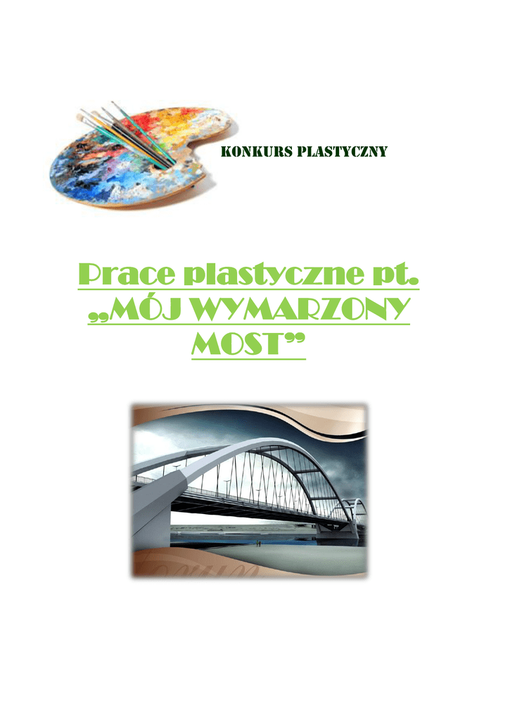 KONKURS PLASTYCZNY Prace plastyczne pt. „MÓJ WYMARZONY MOST” „MÓJ WYMARZONY MOST” KONKURS PLASTYCZNY Organizatorzy konkursu FIRESTA-Fišer, rekonstrukce, stavby_a.s. Spółka Akcyjna, Oddział w Polsce oraz EKOPOL-Ż Sp. z o.o. z siedzibą w Zawadzie mają zaszczyt ogłosić konkurs kierowany do dzieci i młodzieży gminy Piwniczna Zdrój, którego przedmiotem będą prace plastyczne na temat „MÓJ WYMARZONY MOST”.. Założeniem konkursu plastycznego pt. „MÓJ WYMARZONY MOST” jest promocja regionu i inwestycji rozbudowy drogi krajowej nr 87 Nowy Sącz - Piwniczna - Granica Państwa prowadzącej do projektowanego mostu granicznego na rzece Poprad. „KONKURS PLASTYCZNY PT. „MÓJ WYMARZONY MOST” to pomysł na dotarcie do dzieci i młodzieży. Cele Promowanie idei inwestycji i modernizacji, Aktywna edukacja dzieci i młodzieży, podnoszenie świadomości w zakresie zmian zachodzących w ich otoczeniu, Organizatorzy 1. FIRESTA-Fišer, rekonstrukce, stavby_a.s. Spółka Akcyjna, Oddział w Polsce 2. EKOPOL-Ż sp. z o.o. z siedzibą w Zawadzie Przedmiot Przedstawienie w formie pracy plastycznej/plakatu wyobrażenia swojego „wymarzonego mostu” Adresaci Konkurs kierowany jest do trzech grup wiekowych: 1) przedszkola 2) uczniowie szkół podstawowych / gimnazjalnych 3) uczniowie szkół średnich Promocja Media regionalne Promocja wewnętrzna organizatorów, np. strona internetowa Promocja u Partnerów projektu: portale internetowe, materiały reklamowe Listy do szkół 2 -KonkursPlakat pt. „MÓJ WYMARZONY MOST” Nagrody Przyznane zostaną 3 nagrody (I, II, III miejsce) w każdej z trzech grup wiekowych (łącznie 9 nagród). Jury W skład jury konkursowego wejdą organizatorzy konkursu. Harmonogram konkursu 1. Ogłoszenie konkursu wrzesień 2013 2. Nadsyłanie kart zgłoszenia do dnia 4 listopad 2013 3. Ocena prac konkursowych do 10 listopad 2013 4. Przyznanie nagród 20 listopad 2013 Zasady i tryb konkursu 1. Zgłoszenie udziału w konkursie następuje poprzez przesłanie karty zgłoszenia uczestnictwa w konkursie. Karta zgłoszenia stanowi załącznik do niniejszego regulaminu (Załącznik nr 1) Poprawnie wypełnioną kartę zgłoszenia należy przesłać w nieprzekraczalnym terminie do 4 listopada 2013 roku (decyduje data stempla pocztowego) na adres: EKOPOL-Ż Sp. z o.o. Zawada 26 28-230 Połaniec Z DOPISKIEM „PLAKAT pt. MOST MOICH MARZEŃ” 2. Projekt pracy konkursowej może mieć od 1 do maxymalnie 4 autorów 3. Każda z osób biorących udział w konkursie może wysłać tylko jedno swoje zgłoszenie na konkurs (jeden plakat) 4. Jury będzie oceniało pracę konkursową według następujących kryteriów: zgodność z przedmiotem konkursu prezentacja, aranżacja, interpretacja, oryginalność 5. Oceny prac dokona Jury. Postanowienia końcowe 1. Organizatorzy zastrzegają sobie prawo do wykorzystania prac konkursowych w celu ich szerszej popularyzacji. 2. Aktualne informacje o konkursie dostępne pod numerem telefonu 609 178 158. Pytania dotyczące konkursu można także wysyłać na adres e-mail: [email protected] 3 -KonkursPlakat pt. „MÓJ WYMARZONY MOST” „MÓJ WYMARZONY MOST” KONKURS PLASTYCZNY O TEMATYCE EKOLOGICZNEJ Karta zgłoszenia (Załącznik nr 1) 1. Przedszkole/Szkoła ………………………………………………………………………… 2. Klasa/Grupa ………………………………………………………..………………… 3. Imię i nazwisko autora/koordynatora projektu …………………….…………………..….. 4. Adres koordynatora/autora projektu (ulica, numer, kod pocztowy)……………………. ……………………………………………………………………………………………… 5. Numer telefonu autora /koordynatora projektu ……………………………………………. 6. Adres e-mail autora /koordynatora projektu………………………………………………... 7. Imiona i nazwiska pozostałych współautorów pracy (wypełniać jeśli praca ma wielu autorów – max. 4)…………………………………………………………………………………… …………………………………………………………………………………………………. …………………………………………………………………………………………………. …………………………………………………………………………………………………. Proszę przesłać na adres: EKOPOL-Ż Sp. z o.o., Zawada 26, 28-230 Połaniec najpóźniej do 04-11-2013 4 -KonkursPlakat pt. „MÓJ WYMARZONY MOST”