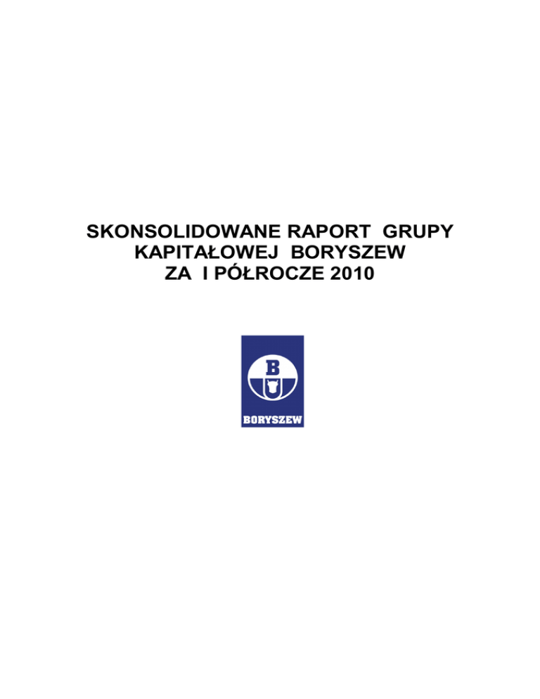 skonsolidowane raport grupy kapitałowej boryszew za i półrocze 2010