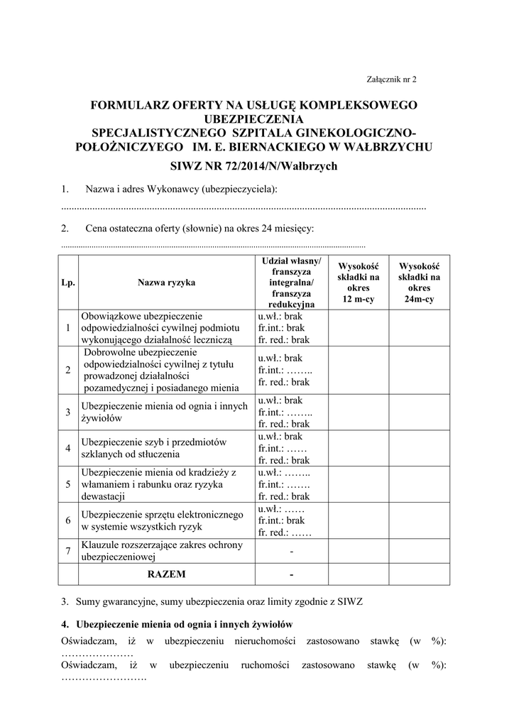 Zał nr 2 Formularz oferty - SPECJALISTYCZNY SZPITAL
