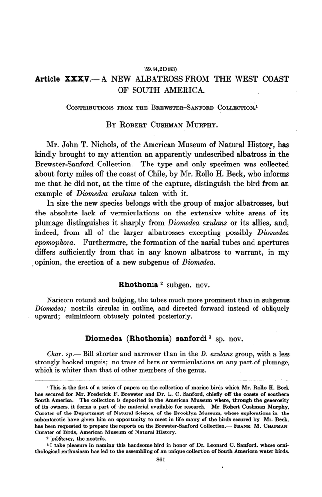 Diomedea (Rhothonia) sanfordi3 sp. nov.