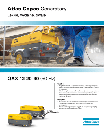 Atlas Copco Generatory Lekkie, wydajne, trwałe QAX 12-20-30 (50 Hz) Trwałość • Wyjątkowo trwała i odporna konstrukcja pozwalająca na pracę generatora w trudnych warunkach roboczych jakie zwykle panują na budowach • Obudowa wykonana ze stali ocynkowanej i malowana proszkowo • Rama bezwyciekowa stanowiąca element wyposażenia podstawowego zapobiegająca powstawaniu problemów związanych z rozlanymi płynami Wydajność • Wydłużony czas pracy dzięki starannemu doborowi elementów i precyzyjnie opracowanej i przetestowanej konfiguracji podzespołów • Niższy koszt eksploatacji ze względu na długie okresy między kolejnymi przeglądami technicznymi Model Konfiguracja Znamionowa prędkość obrotowa Znamionowa wartość współczynnika mocy przy obciążeniu indukcyjnym Moc znamionowa pozorna – moc podstawowa (PRP) Moc znamionowa czynna – moc podstawowa (PRP) Znamionowa wartość napięcia międzyprzewodowego Znamionowa wartość natężenia prądu Maksymalny poziom mocy akustycznej (LWA) zgodnie z 2000/14/EC OND Maksymalny poziom ciśnienia akustycznego w odległości 7 m przy dociążeniu 75% Maksymalny czas pracy na jednym baku paliwa przy pełnym dociążeniu Pojemność zbiornika paliwa Zużycie paliwa przy pełnym dociążeniu (1) QAX 12 400V - 3 fazy230V - 1 faza Obr/min 1500 1500 QAX 20 400V - 3 fazy 1500 QAX 30 400V - 3 fazy 1500 0,8 1 0,8 0,8 kVA 12 10.1 20 30 16.0 400 28,9 93 24 400 43,3 91 kW V A dB(A) 9.6 10.1 400 230 17,3 43,9 91 dB(A) 66 68 66 h l l/h 11.5 40 3,47 15 80 5,26 11.3 80 7,06 1 1 1 1 1 1 1 1 1 1* 1* 1 1 Gniazdka CEE 3 fazy 63A, 400V CEE 3 fazy 32A, 400V CEE 3 fazy 16A, 400V CEE 1 faza 63A, 230V CEE 1 faza 63A, 230V Gniazdko krajowe 1 faza 16A, 230V (CEE lub SCHUKO) *Tylko jedna możliwość do wyboru (16A lub 32A) Alternator - Newage-Stamford Model Klasa zabezpieczenia / Klasa izolacji BCI 164 D1 IP23 / H BCI 184 E1 IP23 / H BCI 184 G1 IP23 / H Silnik - DEUTZ Model Zgodność z normami dotyczącymi emisji Moc znamionowa netto Środek ziębniczy Ilość cylindrów Pojemność skokowa kW cm3 F2M 2011F Poziom 2 12 Olej 2 1550 F3M 2011F Poziom 2 19 Olej 3 2330 F3M 2011F Poziom 2 27.6 Olej 3 2330 Wymiary i masa (Moduł podstawowy) Wymiary (dł. x szer. x wys.) Masa (maszyna gotowa do pracy) m kg 2,02 x 1,04 x 1,02 804 827 Wymiary i masa (podwozie wyposażone w dyszel holowniczy bez możliwości regulacji) Wymiary (dł. x szer. x wys.) m 3,16 x 1,41 x 1,26 Masa (maszyna gotowa do pracy) 2) kg 833 852 864 950 Wymiary i masa (podwozie wyposażone w dyszel holowniczy z możliwością regulacji) Wymiary (dł. x szer. x wys.) m 3,16 / 3,62 x 1,41 x 1,26 Masa (maszyna gotowa do pracy) kg 848 867 931 1016 2) 706 725 Moduł sterowania Qc 1002™ Opcja włączania miejscowego i zdalnego Zabezpieczony przezroczystą osłoną z tworzywa sztucznego nowoczesny panel sterowania umożliwia kontrolę wszystkich parametrów roboczych bez konieczności otwierania obudowy, pozwalający na łatwe uruchamianie i kontrolę pracy generatora. Panel zapewnia również pełny monitoring maszyny znacznie ułatwiając jej obsługę. Opcje • Zabezpieczenie przeciw prądowi upływowemu w gniazdkach trójfazowych • Trzy wersje podwozia: z dyszlem holowniczym bez możliwości regulacji wyposażonym lub nie wyposażonym w hamulce oraz z dyszlem holowniczym z możliwością regulacji. Dyszle holownicze mogą być wyposażone w różne rodzaje uchwytów holowniczych • Generatory QAX dostosowane do współpracy z masztami oświetleniowymi • Możliwość pomalowania w barwy klienta Drąg holowniczy bez możliwości regulacji i bez hamulców: - 35 kg Maszyna została wykonana i poddana testom zgodnie z wymaganiami normy jakościowej ISO 9001. Przepisy obowiązujące w zakładach produkcyjnych Atlas Copco dostosowane są do wymagań jakościowych ISO 9001. Wszystkie części są wytwarzane i testowane zgodnie z obowiązującymi normami gwarantując optymalną wydajność pracy maszyny nawet w najtrudniejszych warunkach roboczych. Warunki odniesienia W przypadku pracy silnika ISO 3046 / 1 – 1995. Temperatura powietrza wlotowego od - 10°C do 40°C. Maksymalna wysokość ponad poziomem morza na którym możliwa jest praca maszyny: - bez obniżenia wartości znamionowych: 1000 m - przy uwzględnieniu obniżenia wartości znamionowych: QAX 12 / 20: 4000 m, QAX 30: 2500 m (1) Należy stosować wyłącznie części zamienne posiadające akceptację producenta. Uszkodzenia lub usterki, które są wynikiem użycia części nie posiadających akceptacji producenta nie są objęte zobowiązaniami wynikającymi z gwarancji lub rękojmi. www.atlascopco.pl 2935 9665 30 - Subject to modifications without prior notice. Printed in Belgium. Copyright 2007, Atlas Copco Airpower n.v., Wilrijk, Belgium. Dane techniczne