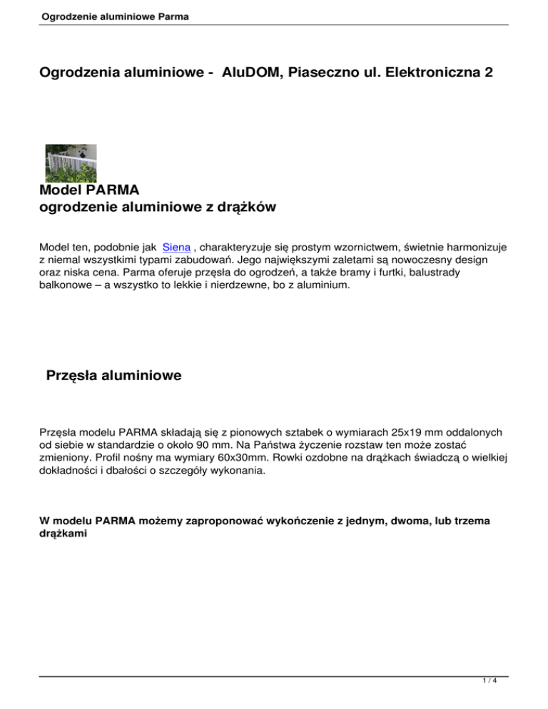 wykonane z drążków aluminiowych. Wszystkie ogrodzenia aluminiowe, także i model Parma, są