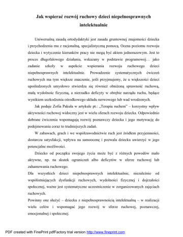Jak wspierać rozwój ruchowy dzieci niepełnosprawnych intelektualnie