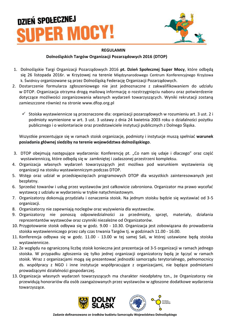 REGULAMIN Dolnośląskich Targów Organizacji Pozarządowych