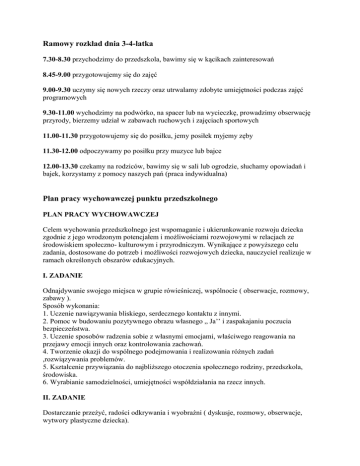 Ramowy rozkład dnia 3-4-latka Plan pracy wychowawczej punktu