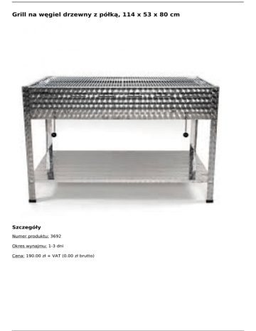 Grill na węgiel drzewny z półką, 114 x 53 x 80 cm Szczegóły Numer produktu: 3692 Okres wynajmu: 1-3 dni Cena: 190.00 zł + VAT (0.00 zł brutto) Powered by TCPDF (www.tcpdf.org)