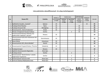 Lista podmiotów zakwalifikowanych do usług marketingowych