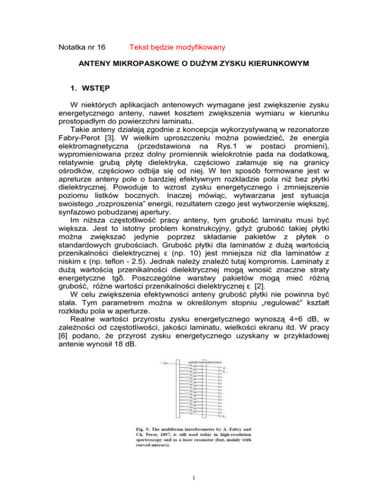 Notatka nr 16. Anteny mikropaskowe o zwiększonym zysku