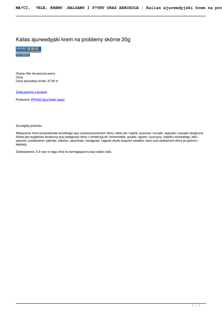 Kailas ajurwedyjski krem na problemy skórne 20g