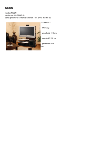 NEON model: NEON producent: HUBERTUS cena: prosimy o kontakt z salonem - tel. (068) 451 98 65 Szafka LCD Wymiary: szerokość 110 cm wysokość 132 cm głębokość 44,5 cm