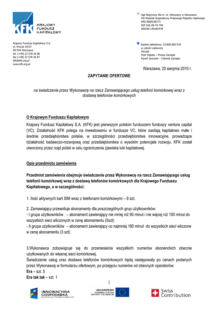 Zapytanie ofertowe - Krajowy Fundusz Kapitałowy