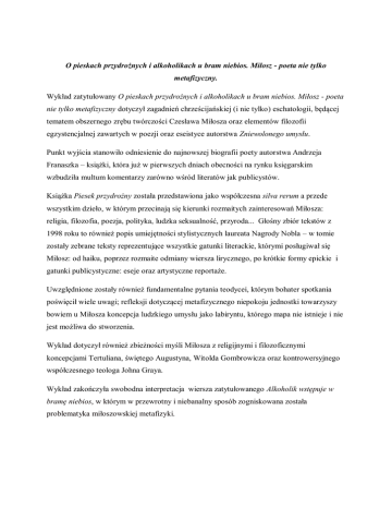 O pieskach przydrożnych i alkoholikach u bram niebios. Miłosz