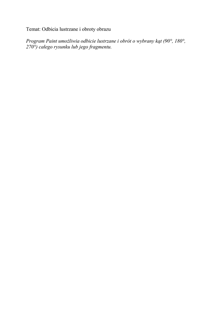 Temat: Odbicia lustrzane i obroty obrazu Program Paint umożliwia