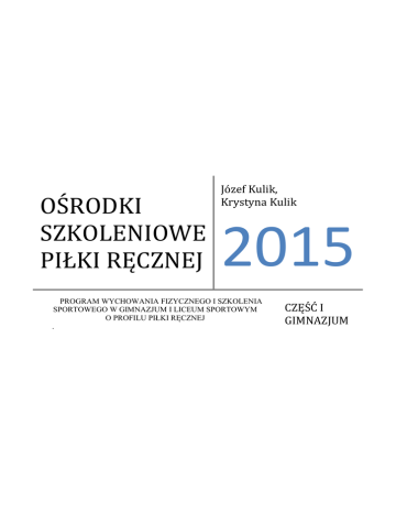 OŚRODKI SZKOLENIOWE PIŁKI RĘCZNEJ Józef Kulik, Krystyna Kulik 2015 PROGRAM WYCHOWANIA FIZYCZNEGO I SZKOLENIA SPORTOWEGO W GIMNAZJUM I LICEUM SPORTOWYM O PROFILU PIŁKI RĘCZNEJ . CZĘŚĆ I GIMNAZJUM O AUTORACH Józef Kulik – absolwent Akademii Wychowania Fizycznego w Gdańsku, trener piłki ręcznej klasy mistrzowskiej, nauczyciel wychowania fizycznego w Zespole Szkół Ponadgimnazjalnych nr 10 w Łodzi. Posiada długoletnie doświadczenie zawodowe w pracy trenerskiej z zespołami młodzieżowymi i seniorskimi zarówno w Polsce jak i w Niemczech. Trener klasy sportowej o profilu piłki ręcznej w liceum i gimnazjum. Współautor Programu wychowania fizycznego w liceum sportowym o profilu piłki ręcznej, zatwierdzonego przez MENiS w 2004 roku. Prowadzi szkolenia dla nauczycieli wychowania fizycznego łódzkich szkół oraz ogólnopolskie kursokonferencje dla trenerów piłki ręcznej. Były zawodnik ChKS Łódź oraz KS Anilana Łódź. Krystyna Kulik – absolwentka Akademii Wychowania Fizycznego w Warszawie, trener II klasy, nauczyciel wychowania fizycznego w Zespole Szkół Ogólnokształcących nr 5 w Łodzi, doradca metodyczny Łódzkiego Centrum Doskonalenia Nauczycieli i Kształcenia Praktycznego. Prowadziła szkolenia dla nauczycieli wychowania fizycznego i rad pedagogicznych łódzkich szkół. Współautorka Programu wychowania fizycznego w liceum sportowym o profilu piłki ręcznej, zatwierdzonego przez MENiS w 2004 roku i innych innowacji pedagogicznych o charakterze programowym. W latach siedemdziesiątych reprezentantka Polski w piłce siatkowej. 2 SPIS TREŚCI: 1. 2. 3. 4. 5. WSTĘP …………………………………………………………………………………………. 5 OPIS PROGRAMU I ZAŁOŻENIA ORGANIZACYJNE………………………………….. 7 CELE OGÓLNE ………………………………………………………………………………. 11 CELE KSZTAŁCENIA……………………………………………………………………… 11 TREŚCI PROGRAMOWE KSZTAŁCENIA I WYCHOWANIA …………………………..12 I. SPRAWNOŚĆ KONDYCYJNO-KOORDYNACYJNA. ZDROWIE……………………… 12 • siła • skoczność • szybkość • wytrzymałość • koordynacja • gibkość • zdrowie II. UMIEJĘTNOŚCI O CHARAKTERZE REKREACYJNO-SPORTOWYM ZESPOŁOWE WSPÓŁDZIAŁANIE W GRACH SPORTOWYCH…………………….. 14 • • • • • • • Piłka siatkowa Koszykówka Piłka nożna Gimnastyka Lekkoatletyka i atletyka terenowa Ruch przy muzyce Sporty uzupełniające (do wyboru ) III. TECHNIKA I TAKTYKA PIŁKI RĘCZNEJ………………………………..................... 16 A. TECHNIKA……………………………………………………………………………… 17 • Klasa I, II • Klasa III B. TAKTYKA……………………………………………………………………………… 20 • Klasa I, II • Klasa III IV. PRZEKAZ WIADOMOŚCI I KSZTAŁTOWANIE POSTAW…………………………. 22 6. 7. 8. 9. 10. 11. ZAŁOŻONE OSIĄGNIĘCIA UCZNIA ……………………… ………… ………………. 23 PROPOZYCJA OCENIANIA OSIĄGNIĘĆ UCZNIA …………………………………… 25 PROCEDURY OSIĄGANIA CELÓW…………………………………………………….. 26 PROJEKT EWALUACJI…………………………………………………………………… 28 BIBLIOGRAFIA……………………………………………………………………………… 29 ZAŁĄZCNIK.................................................................................................................................30 3 „ Sport jest częścią dziedzictwa każdego człowieka, nic nigdy go nie zastąpi” Pierre de Coubertain 1. WSTĘP Przełom XX i XXI wieku przyniósł ze sobą duży postęp w rozwoju wiedzy i techniki, który wpłynął na tempo zmian w wielu dziedzinach życia społecznego. Dla nas nauczycieli, szczególnie istotne są przeobrażenia dokonujące się we wszystkich sferach związanych z kształceniem i wychowaniem. Przemiany dokonujące się w polskiej oświacie stawiają nauczycieli wobec konieczności weryfikacji dotychczasowych sposobów kształcenia oraz poszukiwania nowych, własnych metod. Wiedza i umiejętności zdobyte podczas studiów stają się jedynie punktem wyjścia do zmagań z pracą i wstępem do szeroko pojętego samokształcenia, które przebiegać powinno systematycznie, pod kątem stale zmieniających się potrzeb. Na współczesnej szkole spoczywa obowiązek podejmowania wciąż nowych przedsięwzięć, które mają sprostać nie tylko aktualnym społecznym oczekiwaniom ale i zainteresowaniom ucznia. Tworzenie klas i szkół sportowych jest przykładem takich przedsięwzięć. Mają one na celu zaspokojenie potrzeb edukacyjnych uczniów szczególnie uzdolnionych sportowo i dają możliwość pełniejszego rozwoju ich kierunkowych predyspozycji. Profesor Kazimierz Denek w 1997 roku napisał: „Wyzwaniom XXI wieku może sprostać tylko człowiek odpowiednio wychowany, wielostronnie wykształcony i kompetentny (wiek XXI będzie wiekiem kompetencji) samodzielny, zdolny do myślenia w kategoriach innowacyjnych i alternatywnych, sprawny, wrażliwy na wartości, uznający je za drogowskazy postępowania w życiu, czyli pełny.” Dlatego też współczesny nauczyciel, aby móc kształtować kompetencje ucznia powinien sam być człowiekiem „pełnym” i kompetentnym, dążyć do osiągnięcia takiego poziomu wiedzy, umiejętności, dyspozycji sprawnościowych i uznawanych wartości, które zagwarantują skuteczną realizację założonych celów. Szczególnie ważne jest to w przypadku nauczycieli sportu czyli trenerów, zwłaszcza grup młodzieżowych, realizujących złożony proces pedagogiczny jakim jest trening. Trener jest twórcą i animatorem tego procesu, w którym poprzez nauczanie, doskonalenie, wychowanie, udział w zawodach oraz bar