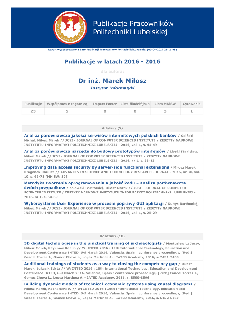Dr inż. Marek Miłosz - Publikacje pracowników PL