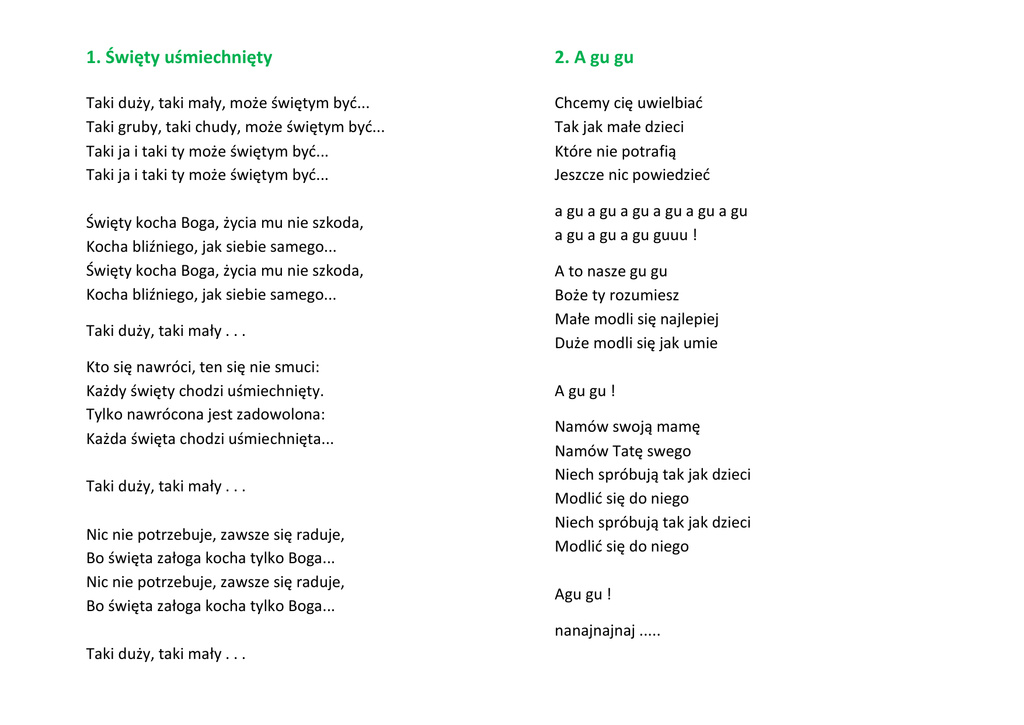 1. Święty uśmiechnięty 2. A gu gu