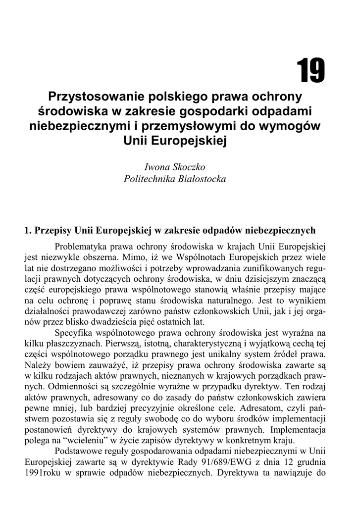 Przystosowanie polskiego prawa ochrony środowiska w zakresie