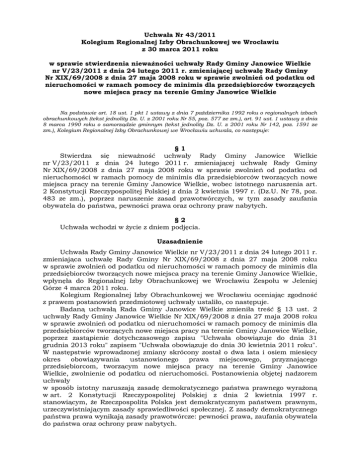 Uchwała Nr 43/2011 Kolegium Regionalnej Izby Obrachunkowej we
