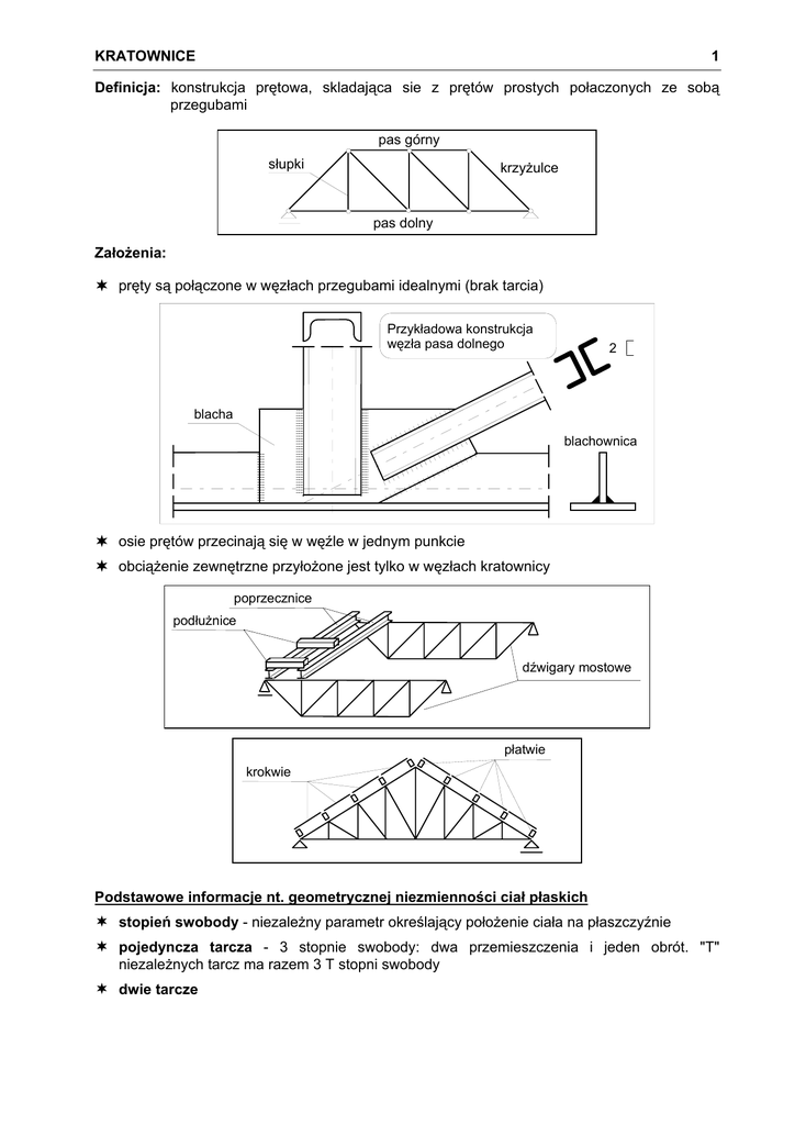 KRATOWNICE 1 Definicja: konstrukcja prętowa, skladająca sie z