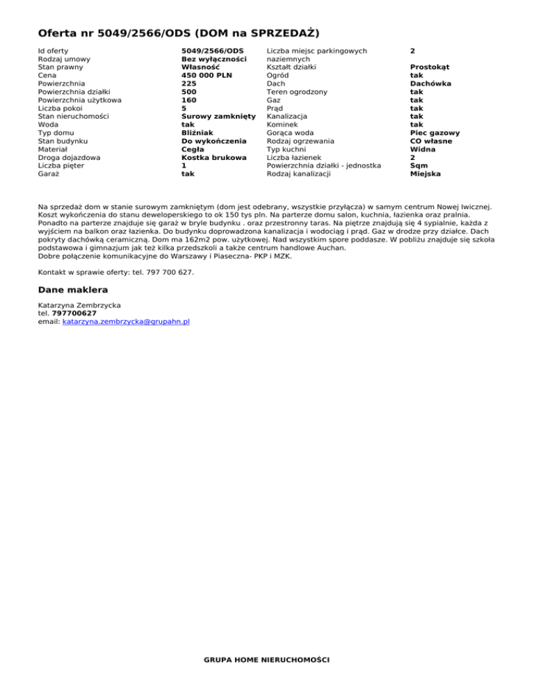Oferta nr 5049/2566/ODS (DOM na SPRZEDAŻ)