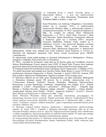 Z ormiańską krwią w żyłach, lwowską duszą, w kapucyńskim habicie