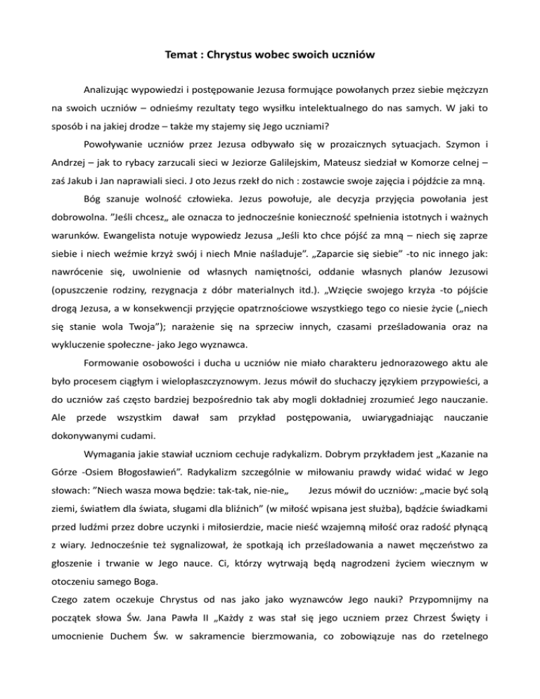 Temat : Chrystus wobec swoich uczniów