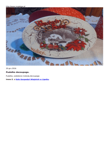 http://www.mojekgw.pl 20 gru 2016 Pudełko decoupage. Pudełko, ozdobione metodą decoupage. Irena Z. z Koło Gospodyń Wiejskich w Lipniku
