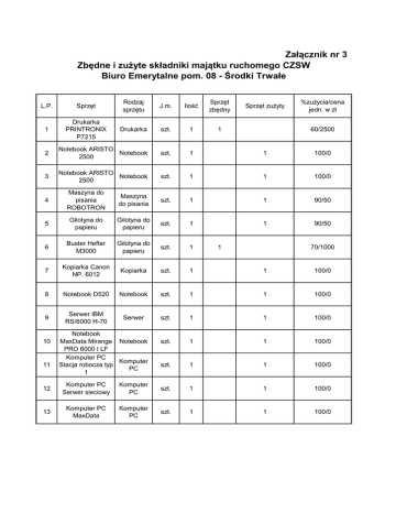 Załącznik nr 3 Zbędne i zużyte składniki majątku ruchomego CZSW