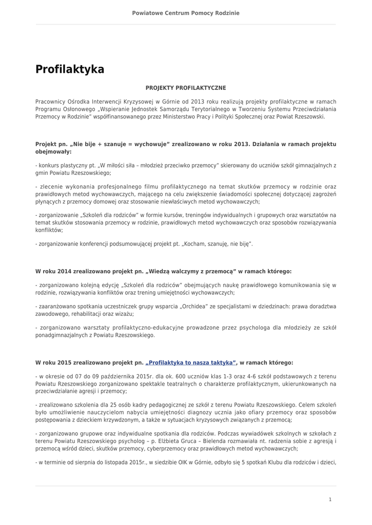 Profilaktyka - Powiatowe Centrum Pomocy Rodzinie w Rzeszowie