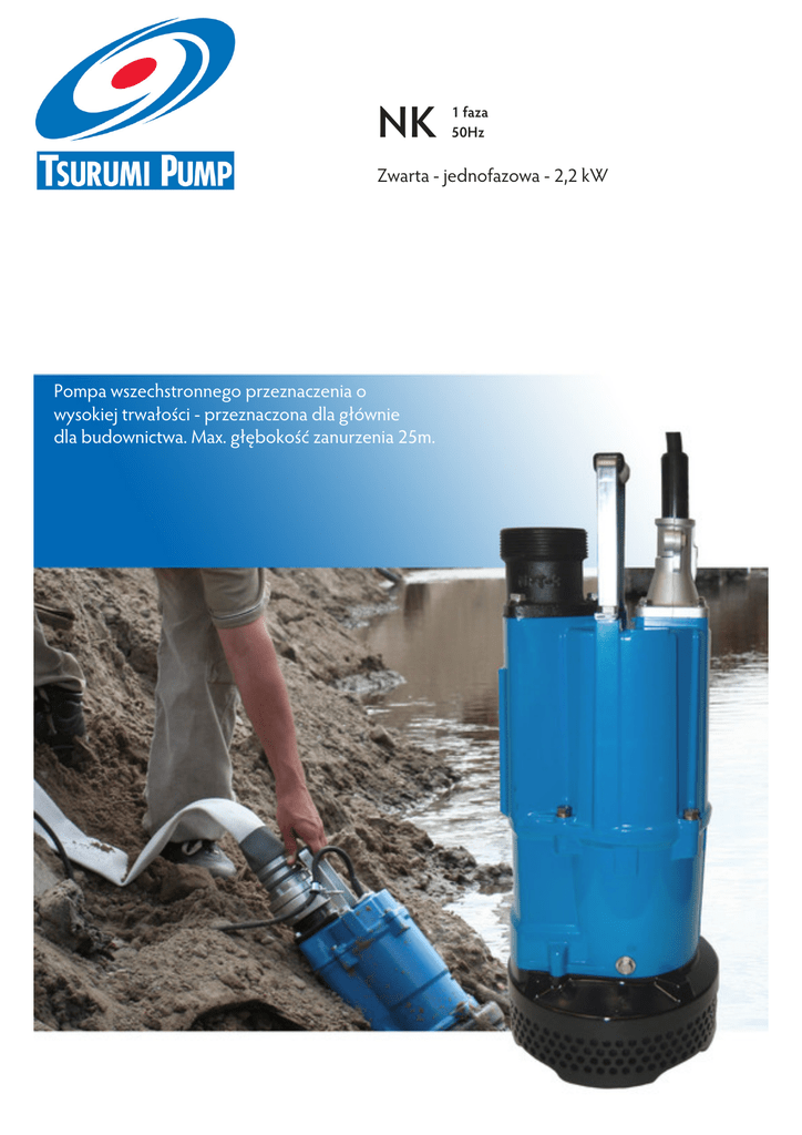 NK 1 faza 50Hz Zwarta - jednofazowa - 2,2 kW Pompa wszechstronnego przeznaczenia o wysokiej trwałości - przeznaczona dla głównie dla budownictwa. Max. głębokość zanurzenia 25m. Przenośne pompy dla budownictwa NK 1 faza 50Hz Wylot pionowo do góry Skuteczne chłodzenie również przy małych wydatkach. Instalacja możliwa też tam, gdzie brak miejsca. Pompa może pracować przy niskim poziomie wody, a także z zasysaniem powietrza. Skuteczne chłodzenie silnika. Pompa jest smukła. Pompowane medium przepływa wzdłuż silnika do góry. Takie rozwiązanie zabiera mało miejsca, a chłodzenie silnika jest wystarczające, nawet, gdy pompa zasysa podczas pracy powietrze. Zwiększona wytrzymałość na ciśnienie. Nowe uszczelnienia mechaniczne dopuszczają zanurzenie do 25m, co zwiększa możliwości stosowania tej pompy w budownictwie. Składniki: 001 020 021 023 025 029 030 031 032. 035 036 050 051 052A Kabel 052B Korpus pompy 053 Wirnik 054 Kosz wlotowy 055 Uszczelnienie mechaniczne 056 Korpus olejowy 064 Podnośnik oleju 068 Płyta wlotowa 071 Wylot 076A Korek olejowy 076B Smar 077 Pokrywa silnika 121 Pokrywa pompy 122 Łożysko górne 127 Stan 12/2016 Łożysko dolne Wyłącznik termiczny Wał Wirnik silnika Stator Korpus silnika Uchwyt Tuleja ochronna wału Kondensator Kondensator Wyłącznik odśrodkowy Szczeliwo V-ring Płyta mocująca | Strona 02 Moc silnika kW Prąd nominalny A Maksymalna wysokość podnoszenia, m Maksymalna wydajność l/min Masa bez kabla 50 80 2,2 2,2 13,5 14,5 24,0 18,0 525 800 29,0 40,0 Króciec wwylotowy ø mm 50, 80 Ciecz Typ medium pompowana Temperatura Woda czysta, gruntowa, woda z piaskiem Pompa Silnik 25 25 20 20 0-40°C Komponenty Wirnik Materiał 6 6 Długość kabla Króciec tłoczny 1 2 •• NK3-22 NK3-22L Maksymalna wielkość zanieczyszczeń, otwory kosza wlotowego Druckbeständigkeit max. m Krzywa mocy, kolor Model Wykazy: Wirnik semi-vortex Uszczelnienie wału Podwójne wewnętrzne uszczelnienie mechaniczne Łożyska Łożyska kulkowe zamknięte Wirnik Żeliwo sferoidalne EN-GJS-700-2, Żeliwo chromowe Korpus Guma etylenowo propylenowa, Żeliwo szare GG20 Uszczelnienie wału Węglik krzemu w kąpieli olejowej Smarowanie Olej turbinowy (ISOVG32) Izolacja Izolacja klasy B Typ, bieguny Silnik indukcyjny, 2-biegunowy, suchy, IP68 Zabezpieczenie silnika (wbudowane) Fazy/napięcie Wyłącznik termiczny Materiał Korpus Aluminiowy odlew ciśnieniowy Wał Stal nierdzewna EN-X6Cr13, Stal nierdzewna EN-X30Cr13 Kabel Guma, H07RN-F Jednofazowa /230V /50Hz Wylot Końcówka do węża Wymiary: Model d A A1 B B1 D H W1 NK3-22 NK3-22L 50 80 240 235 187 191 555 601 473 519 240 216 623 669 120 120 Minimalny poziom wody Przy pompowaniu mediów korozyjnych i ścierających niektóre części pompy zużywają się szybciej. Informacje na ten temat są na stronie www.tsurumi.eu/english/applications.htm Stan 12/2016 | Strona 03 Nasza działalność jest przyjazna dla środowiska i pracowników, co wpływa też na rozwój przedsiębiorstwa. Zdolność produkcyjna naszej fabryki w Kioto sięga miliona pomp rocznie. Osiągamy najwyższą efektywność dzięki najnowocześniejszym technologiom i optymalizacji procesu wytwarzania. Największym naszym bogactwem są nasi pracownicy. Naszym głównym celem są zawsze optymalne warunki pracy: klimatyzacja pomieszczeń, minimalizacja zapylenia i emisji gazów, a także szeroki zakres odzyskiwanae odpadów. Tsurumi (Europe) GmbH Wahlerstr. 10 D-40472 Düsseldorf Tel.: +49 (0)211-4179373 Fax: +49 (0)211-417937-480 Email: [email protected] www.tsurumi.eu con-NK-PL Nasze pompy są przeznaczone do zastosowań profesjonalnych. Zastrzegamy sobie prawo wprowadzania bez uprzedzenia zmian w celu u doskonalenia produktów. Gwarancja udzielona przez Tsurumi (Europe) GmbH daje Klientowi w okresie jej trwania prawo do bezpłatnej naprawy urządzenia, jeżeli są spełnione warunki gwarancyjne. Uszkodzenia wynikające z niefachowej obsługi albo niewłaściwego użytkowania nie będą naprawione w ramach gwarancji. Tsurumi (Europe) GmbH rozstrzyga, czy usunięcie wady dokona się przez naprawę, czy wymianę.