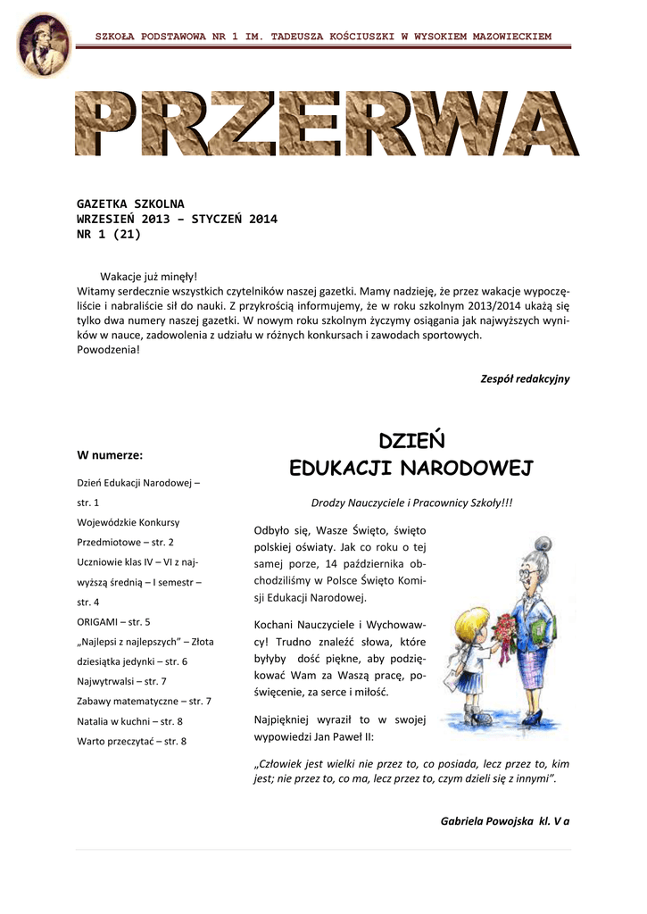 Przerwa Nr 1 - Szkoła Podstawowa Nr 1 w Wysokiem Mazowieckiem