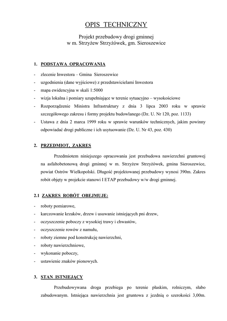 OPIS TECHNICZNY Strzyżew Strzyżówek 390